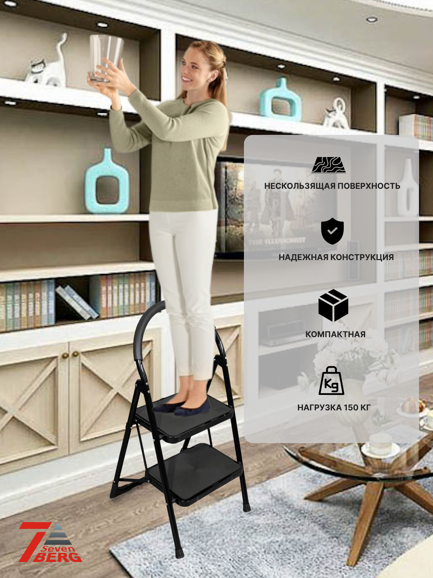 Купить Стремянка Sevenberg Prima Lux Черная 2 Широкие Ступени, Рабочая Высота 2.5 М, Нагрузка 150 Кг. с доставкой по всей России. Стремянка Sevenberg Prima Lux Черная 2 Широкие Ступени, Рабочая Высота 2.5 М, Нагрузка 150 Кг.: сравнение цен, характеристики, фото, актуальное наличие и цены.