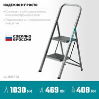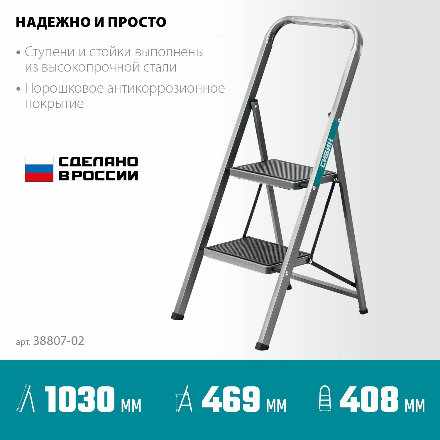 Купить Стремянка СИБИН 2 ступени, 46 см, широкие обрезиненные ступени, стальная 38807-02_z02 с доставкой по всей России.