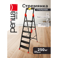 Купить Стремянка стальная, 6 ступеней, с лотком для инструментов, черная, Perilla с доставкой по всей России.