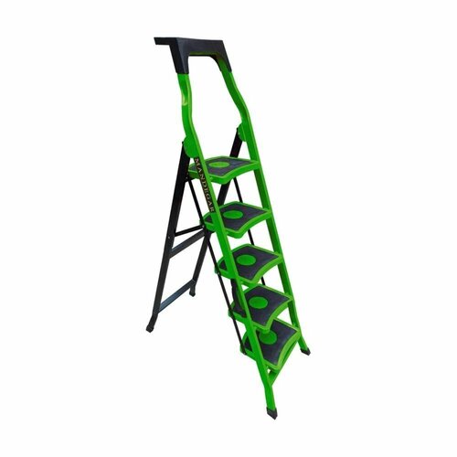 Стремянка стальная Mandegar SAMA зеленого цвета с 5 широкими ступенями
