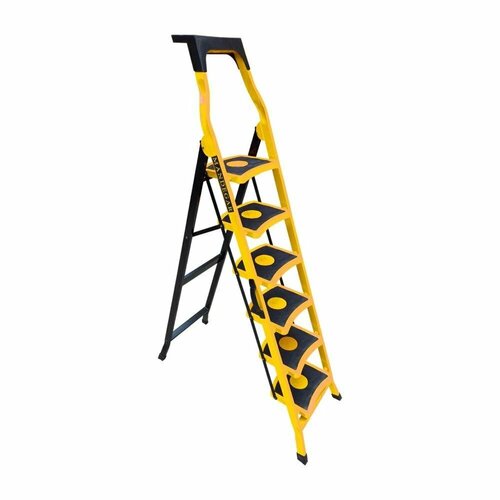 Стремянка стальная Mandegar SAMA желтого цвета с 6 широкими ступенями