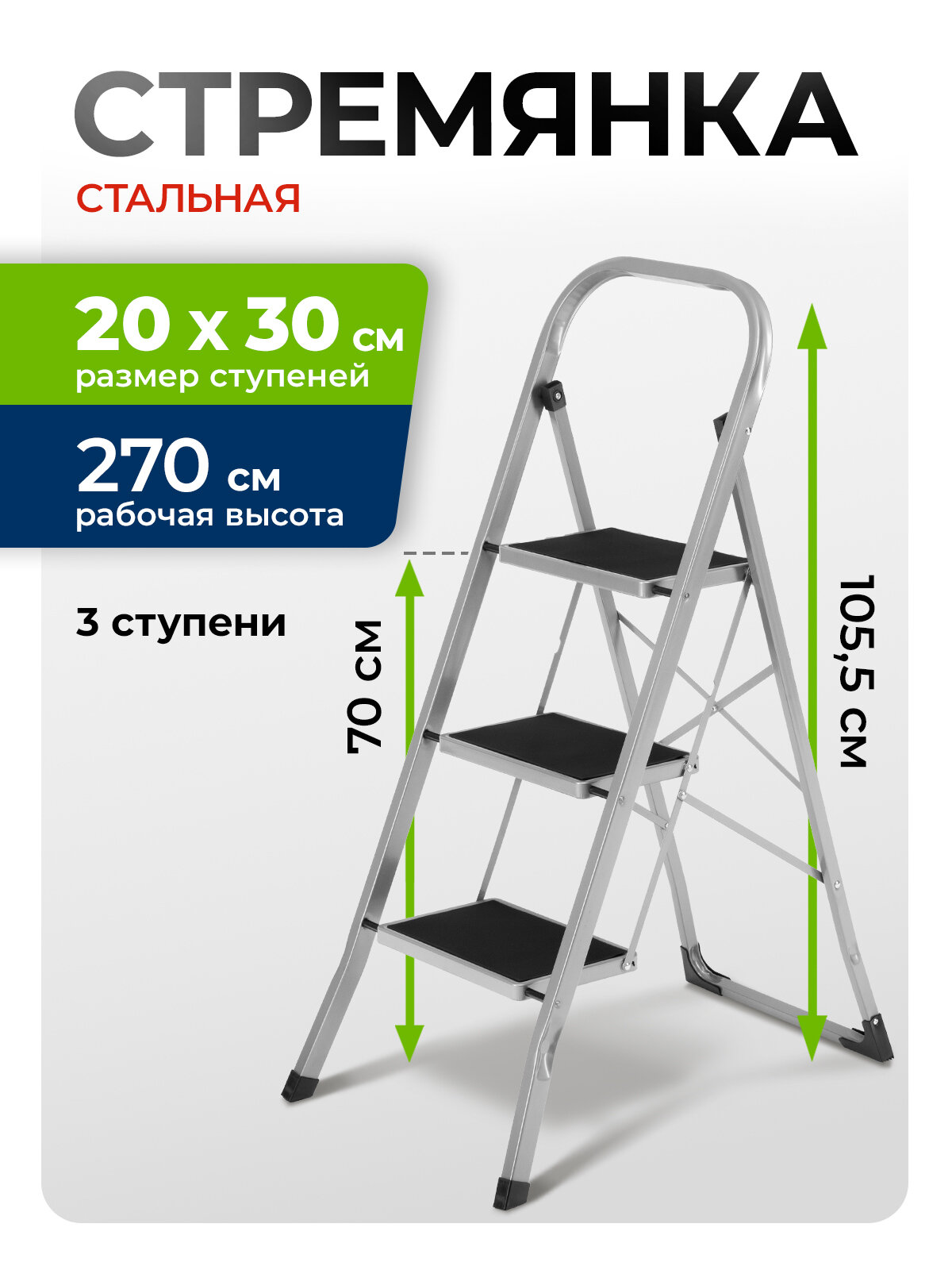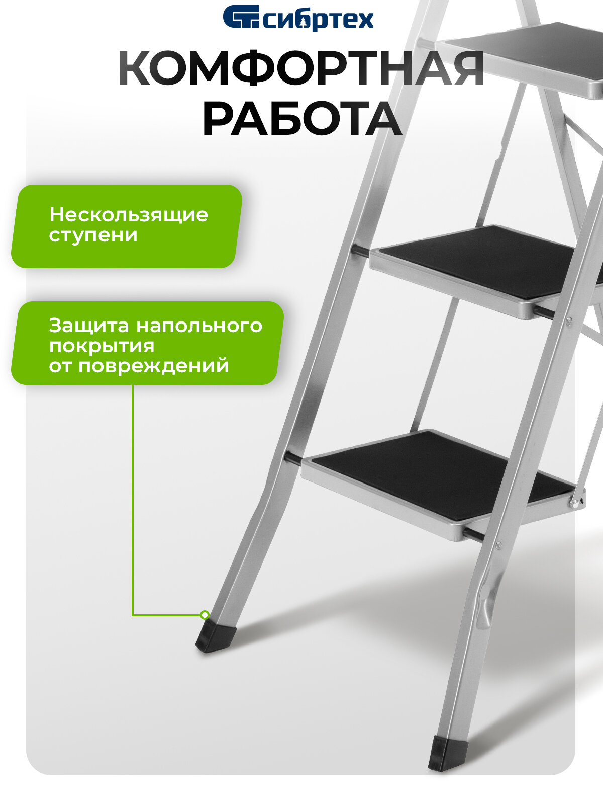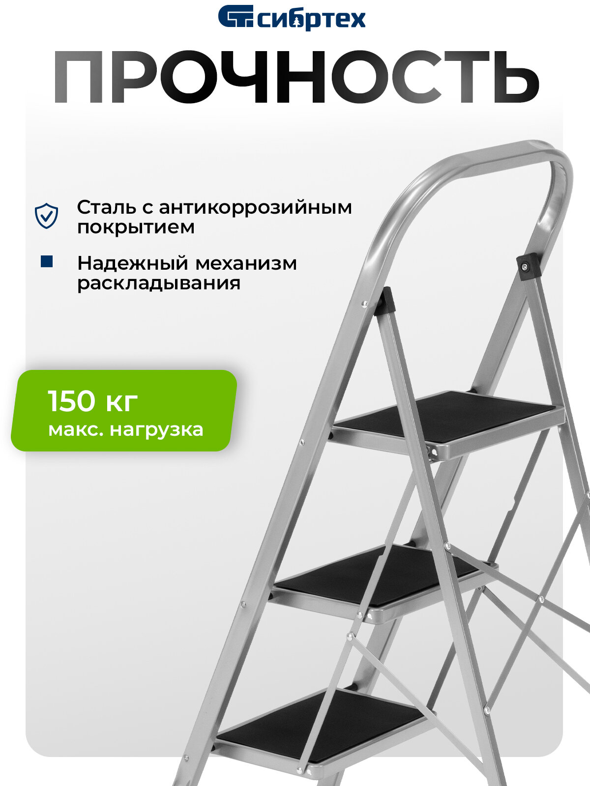 Стремянка стальная Сибртех, 3 широкие ступени 20х30 см с полимерным покрытием , 97727: сравнение цен, характеристики, фото, актуальное наличие и цены.