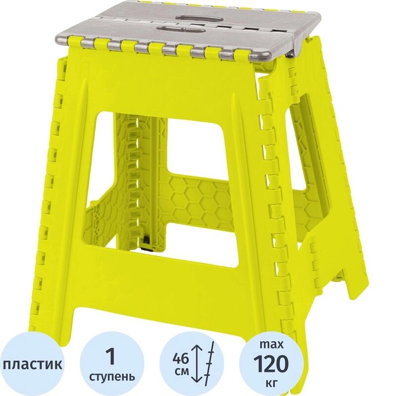 Купить Стремянка -табурет пластик большая складная Color-X серо-желтая с доставкой по всей России.