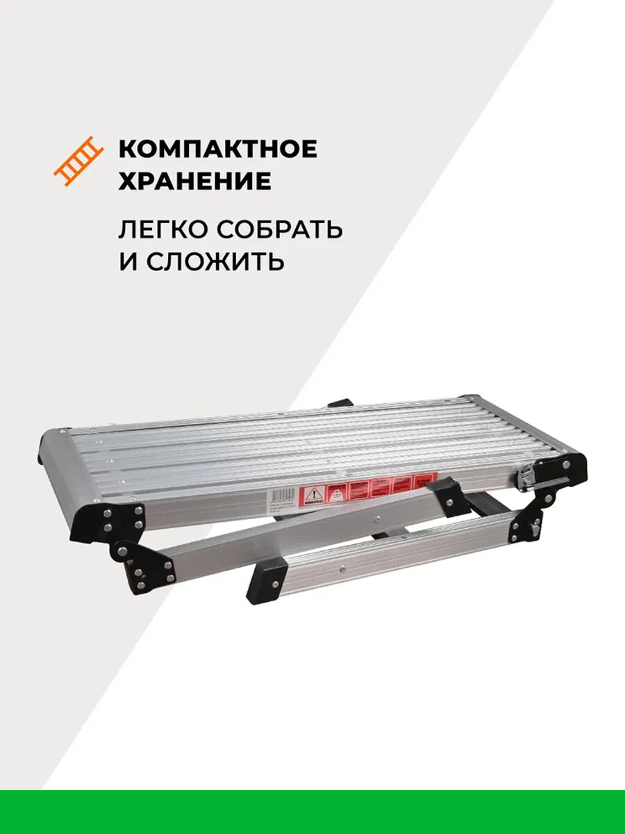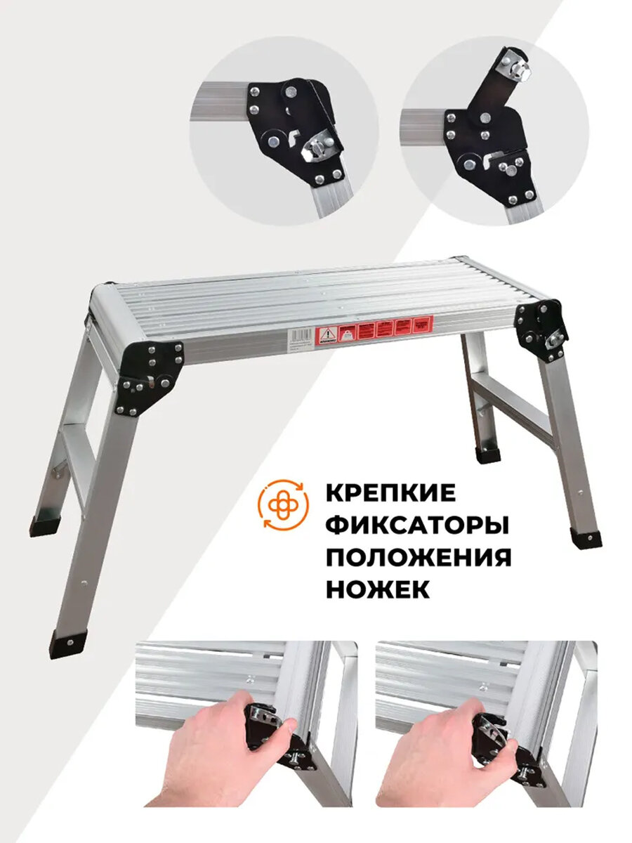 Рабочая платформа складная - вещь незаменимая в хозяйстве и в качестве аксессуара для строительства. Табурет-стремянка металлическая будет полезна для ремонта, для дома, для кухни, для гаража, для дачи, для сада, для похода, для стройки и в быту. Складной стул трансформер особенно хорош для хозяек, ведь высоко расположенные ящики часто являются для них недоступными. Даже обычного табурета не всегда достаточно для того, чтобы дотянуться до необходимых вещей на верхних полках или повесить шторы. Стул-стремянка имеет удобную высоту 51 см, максимальная нагрузка табурета складного – 150 кг. Лестница трансформер очень удобна в применении так как имеет легкий вес, ее легко собрать и сложить, ее легко взять с собой. Стремянка ступенька универсальная, её можно использовать в прихожей, на кухне, в спальне, в коридоре, в гостиной, она не портит внешний вид интерьера. Складывающийся табурет-ступенька полностью надежен и безопасен для использования, так как имеет защитные нескользящие наконечники на опорах, а также рифленую поверхность ступеней. Его можно использовать его как ступеньку, или как табурет. Табурет ступенька не боится воды, выполнен из качественных материалов и рассчитан на долгое и частое использование.