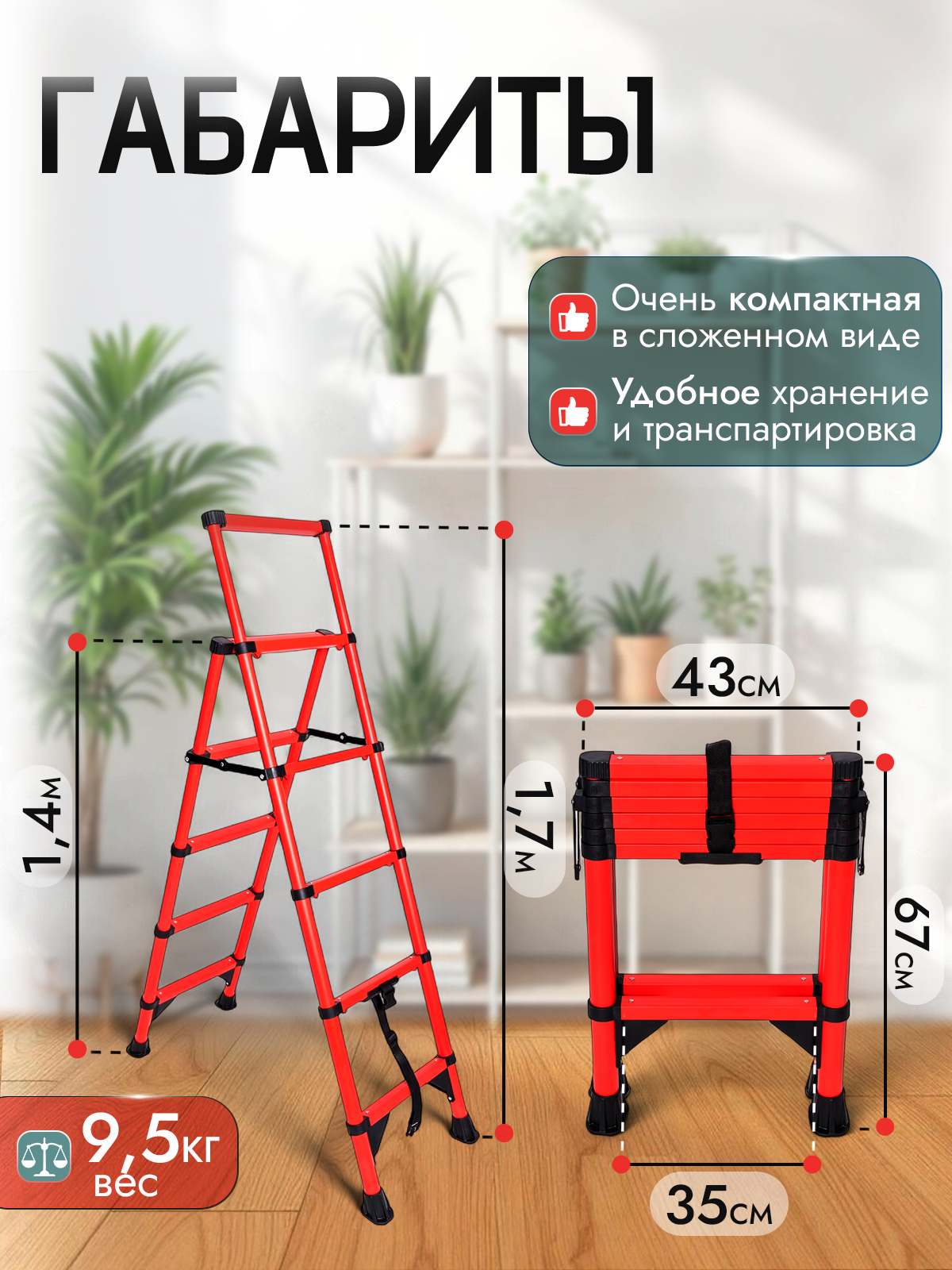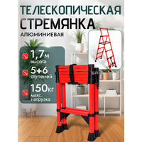Стремянка «МИ ПРОФИ», телескопическая, антискользящая, 1.4 м, 5+6 ступеней, максимальная нагрузка 150 кг: сравнение цен, характеристики, фото, актуальное наличие и цены.