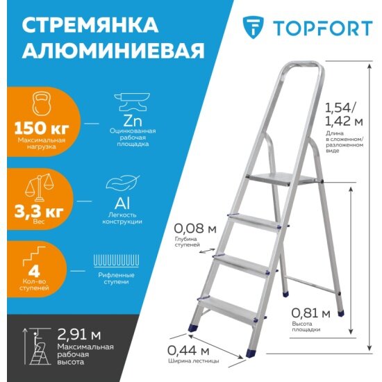 Купить Стремянка TopFort, алюминий, 4 ступени с доставкой по всей России. Стремянка TopFort, алюминий, 4 ступени: сравнение цен, характеристики, фото, актуальное наличие и цены.
