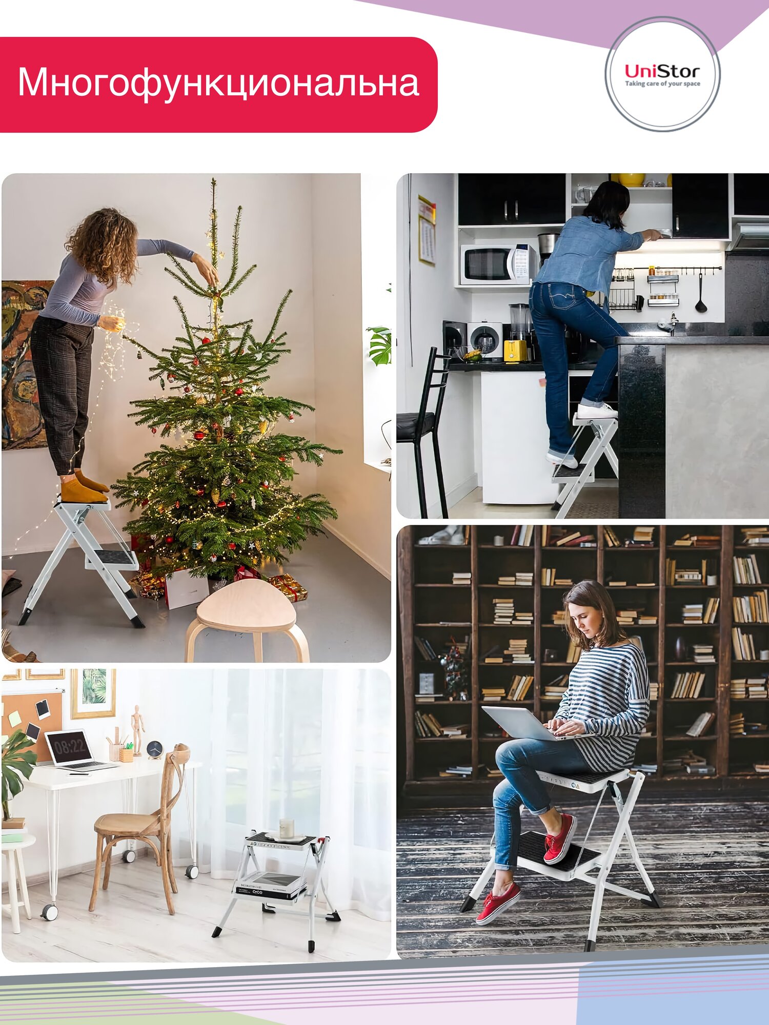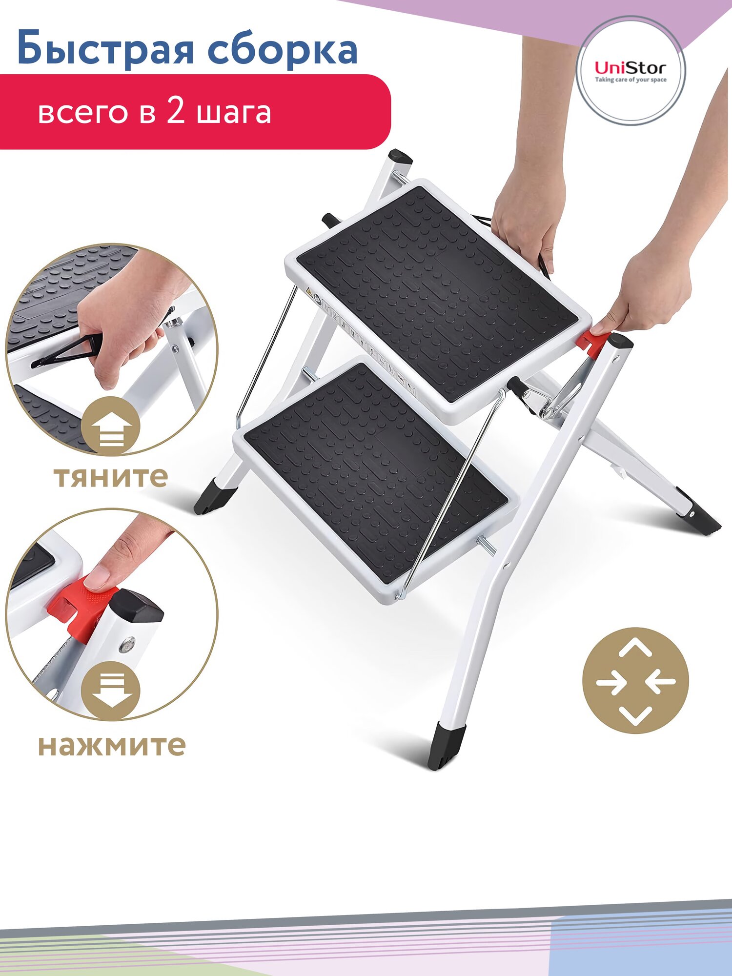 Стремянка UniStor Apex, складная, нагрузка до 150кг, 2 ступени, антискользящее покрытие, складная: сравнение цен, характеристики, фото, актуальное наличие и цены.