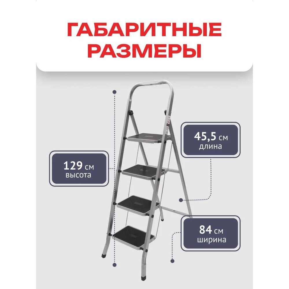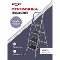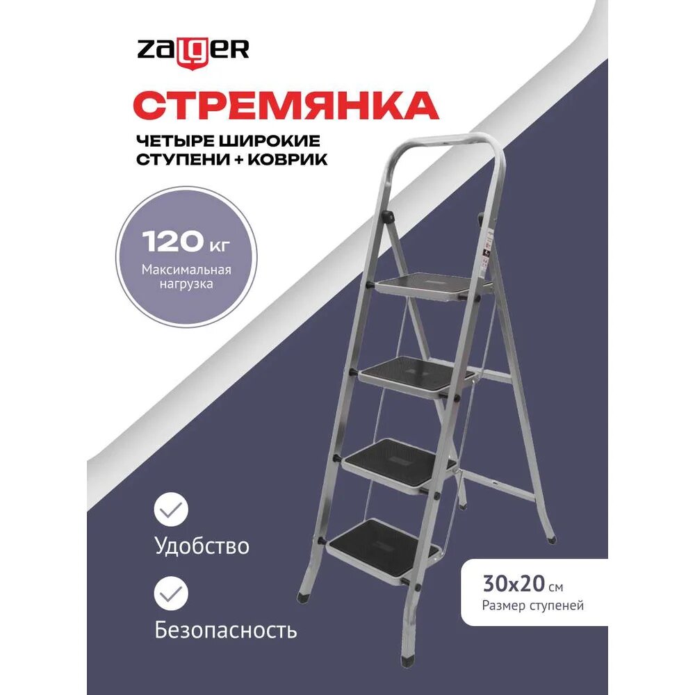 Купить Стремянка Zalger 4 широкие ступени с ковриком, сталь 511-4 с доставкой по всей России.