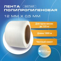 Стреппинг лента 12 мм х 0,5 мм х 1000 м, белая, лента полипропиленовая Волга Полимер, лента пп для упаковки упаковочная: сравнение цен, характеристики, фото, актуальное наличие и цены.