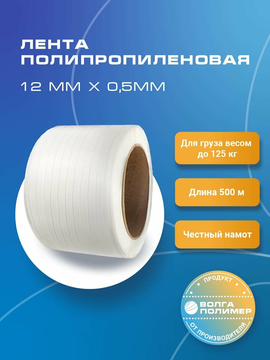 Стреппинг лента 12 мм х 0,5 мм х 500 м, белая, лента полипропиленовая Волга Полимер, лента пп для упаковки упаковочная: сравнение цен, характеристики, фото, актуальное наличие и цены.