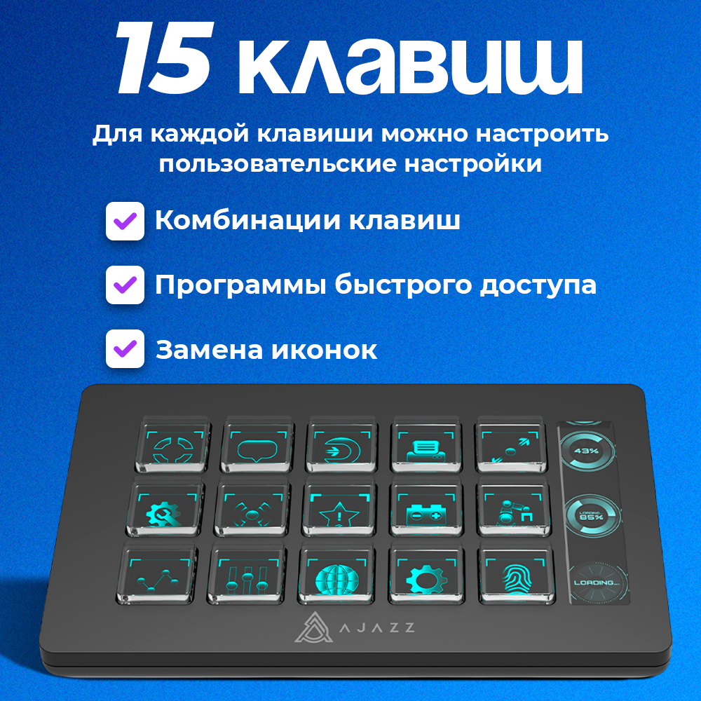Купить Стримпад, панель управления для компьютера Ajazz AKP153R, черный, LCD экран, 15 клавиш с доставкой по всей России. Стримпад, панель управления для компьютера Ajazz AKP153R, черный, LCD экран, 15 клавиш: сравнение цен, характеристики, фото, актуальное наличие и цены.