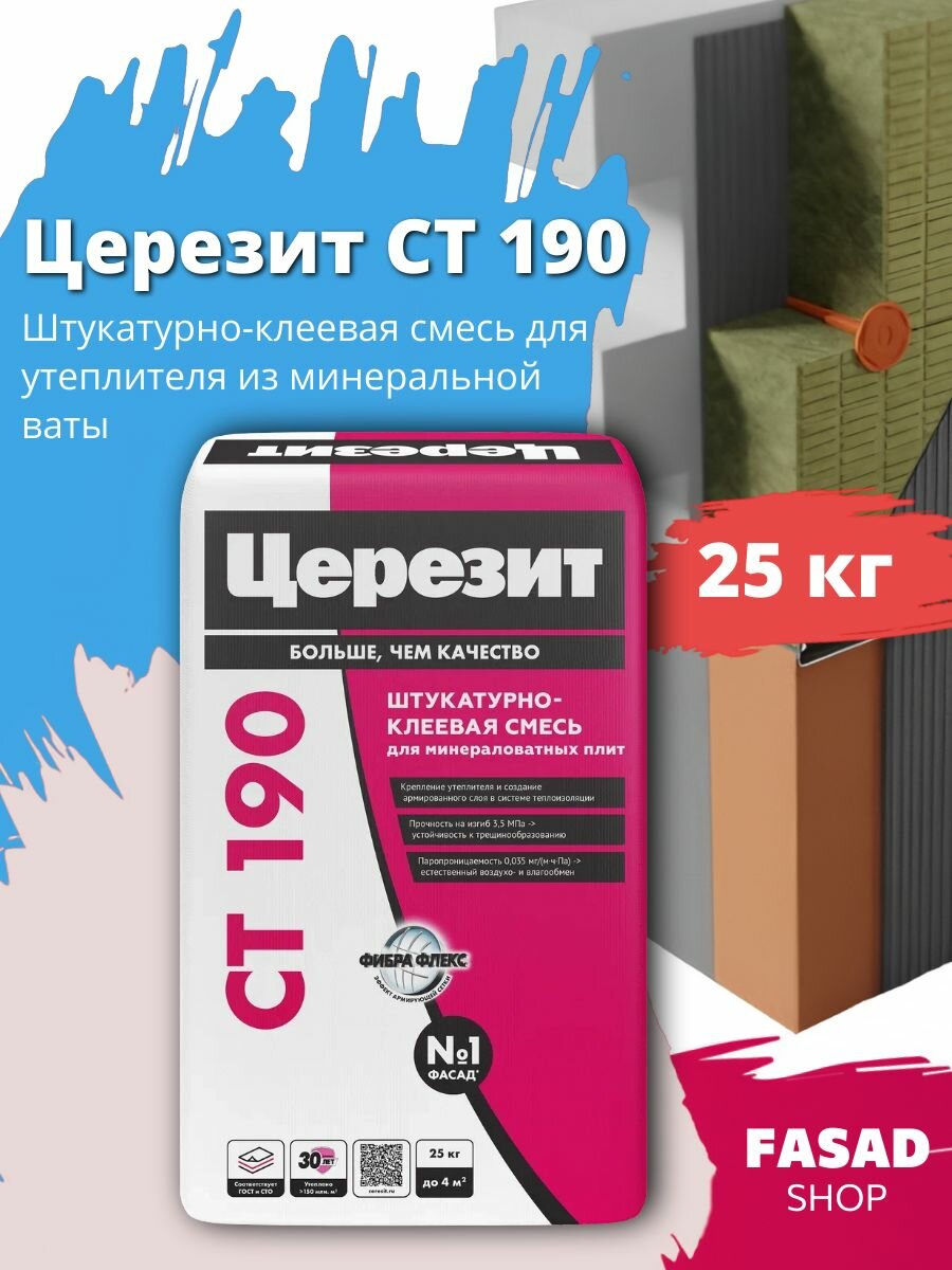 Церезит СТ 190 Штукатурно-клеевая смесь для минеральной ваты при наружной теплоизоляции фасадов, 25 кг: сравнение цен, характеристики, фото, актуальное наличие и цены.