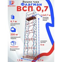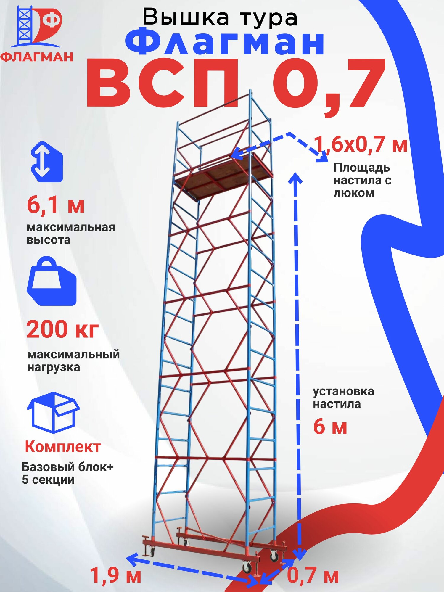 Купить Строительная вышка-тура Флагман ВСП-0.7, передвижная, 0,7 х 1,6 м, высота 7,35 м, нагрузка 200 кг, комплект: базовый блок + 5 секций с доставкой по всей России. Строительная вышка-тура Флагман ВСП-0.7, передвижная, 0,7 х 1,6 м, высота 7,35 м, нагрузка 200 кг, комплект: базовый блок + 5 секций: сравнение цен, характеристики, фото, актуальное наличие и цены.
