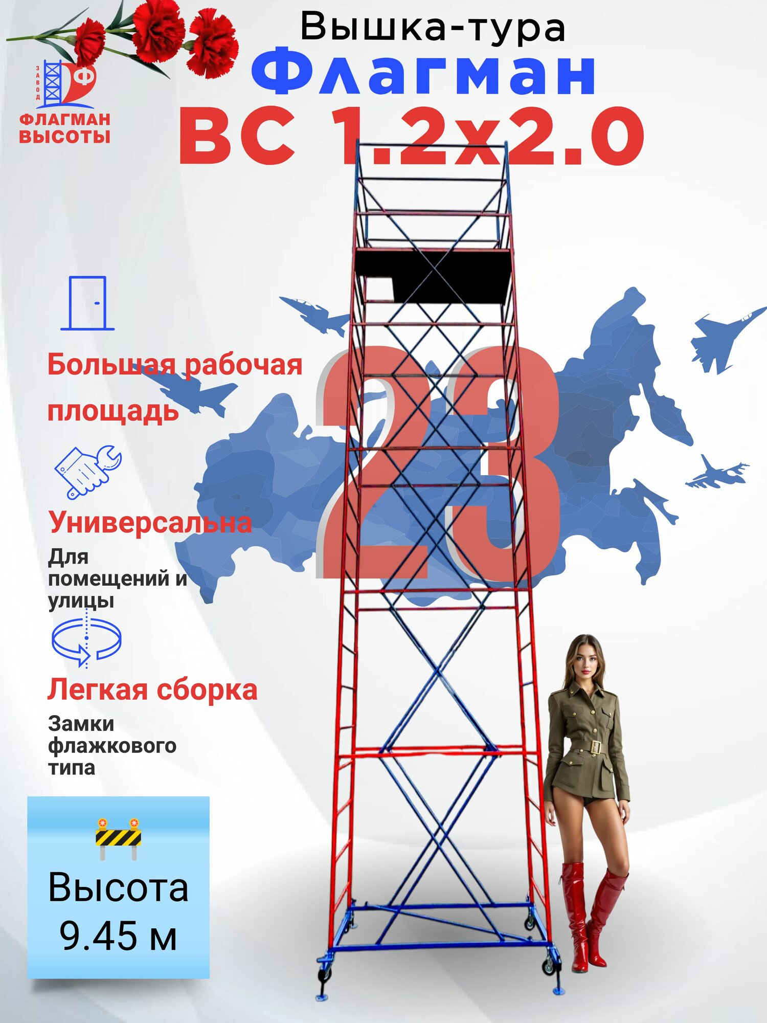 - Высота конструкции: 9,45 м