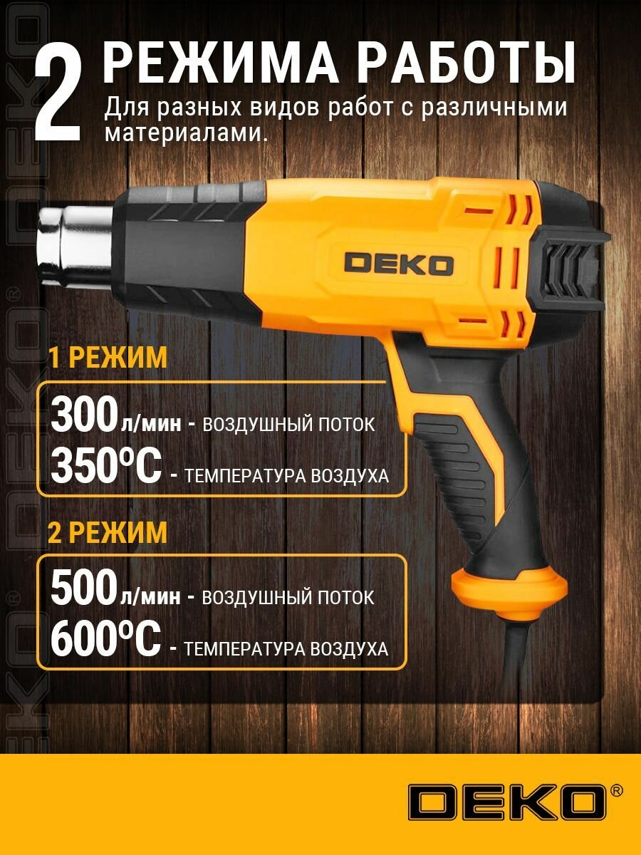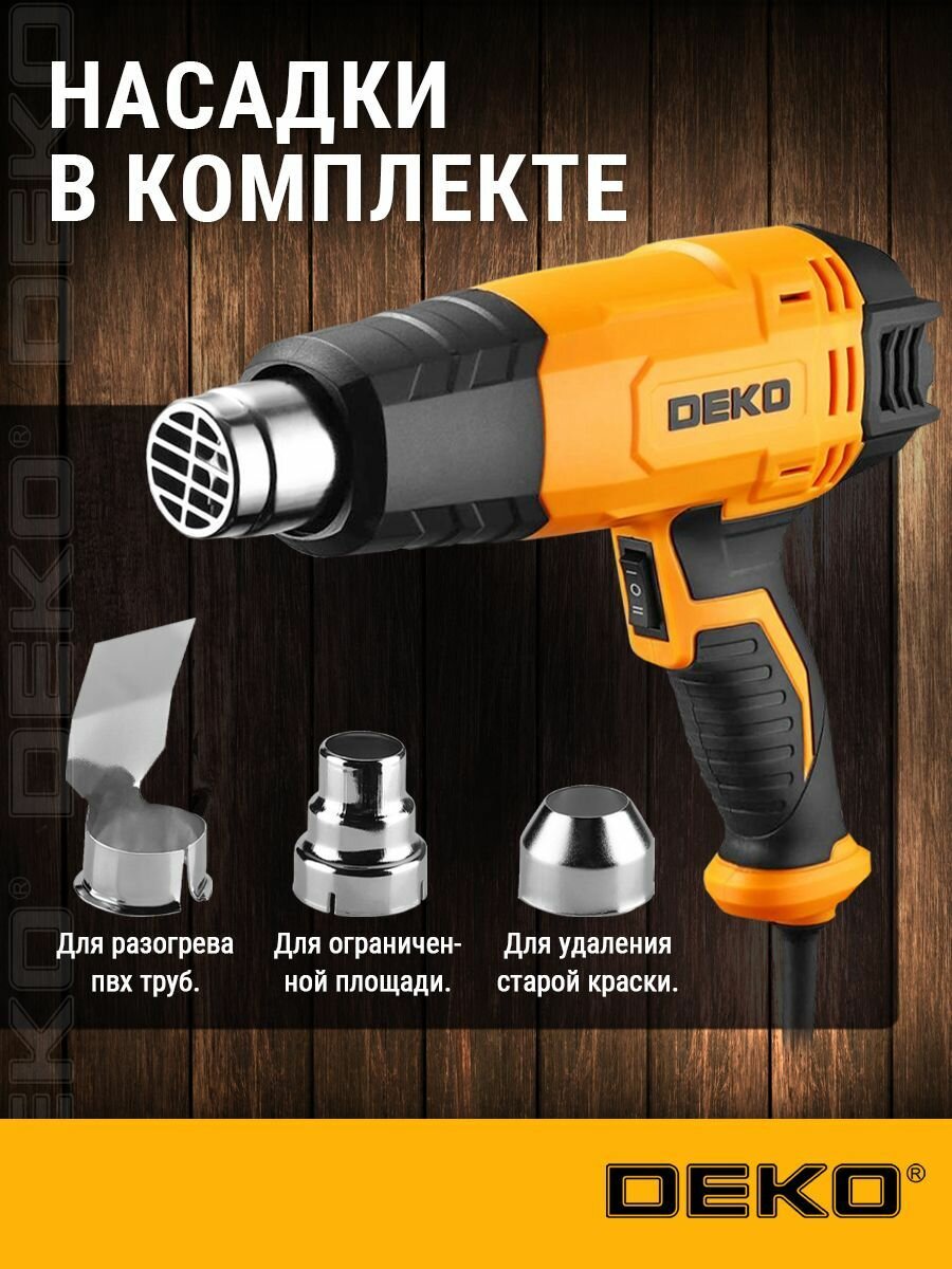 Строительный фен DEKO «DKHG2200», защита от перегрева, 2200Вт, 3 режима, 5 насадок: сравнение цен, характеристики, фото, актуальное наличие и цены.