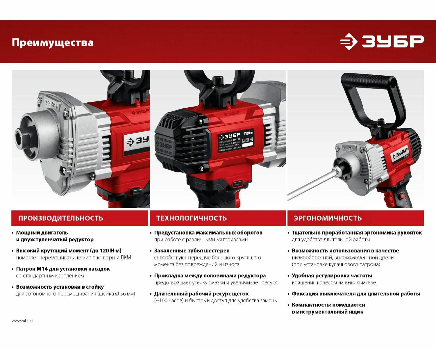 металлический корпус редуктора, двухступенчатый редуктор, кнопка фиксации выключателя, шейка редуктора диаметром 56 мм, дополнительная рукоятка, эргономичная конструкция, противоскользящие накладки на рукоятке, боковой выход кабеля, универсальный для различных материалов, высокий крутящий момент, возможность стационарного крепления