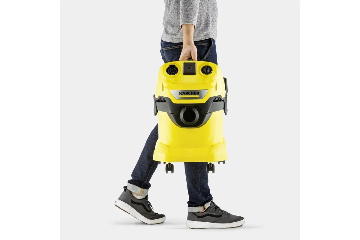 Строительный пылесос Karcher WD 4 P V-20/5/22 желтый, 1000 Вт, уборка сухая/сбор воды/выдув, пылесборник мешок/контейнер, 20 л: сравнение цен, характеристики, фото, актуальное наличие и цены.