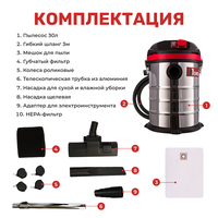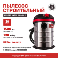 Купить Строительный пылесос NUMBER ONE VC1500/30-1 30л, 1500Вт, 4м шланг, пылесборник. с доставкой по всей России.