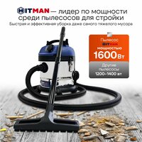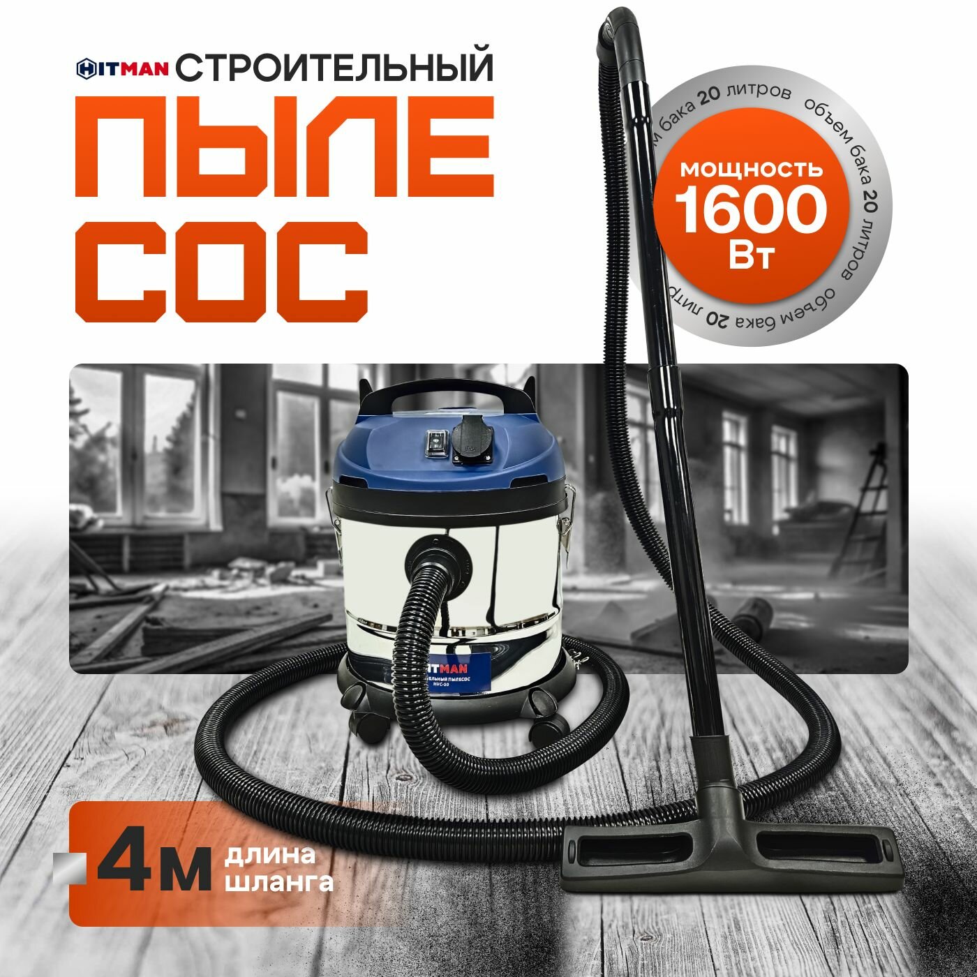 Купить Строительный пылесос, промышленный, электрический Hitman( 1600 Вт, 20 литров, сухая/влажная уборка ) с доставкой по всей России.