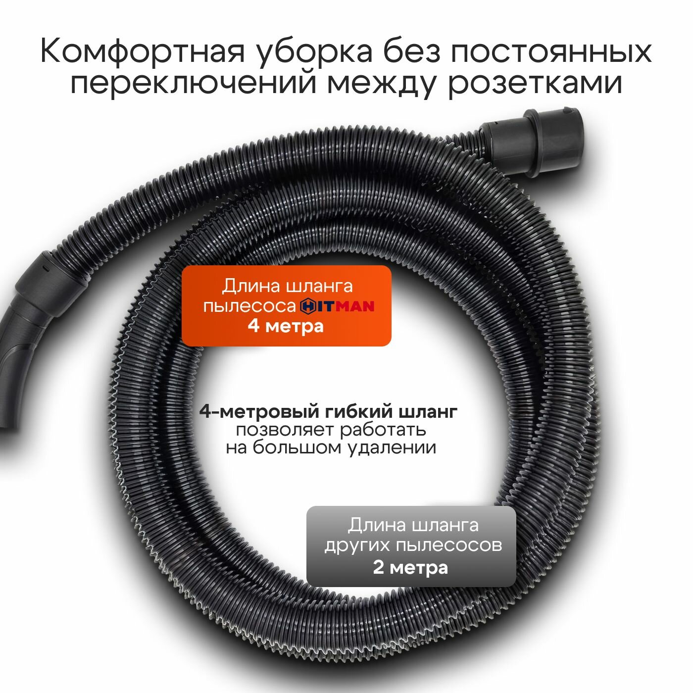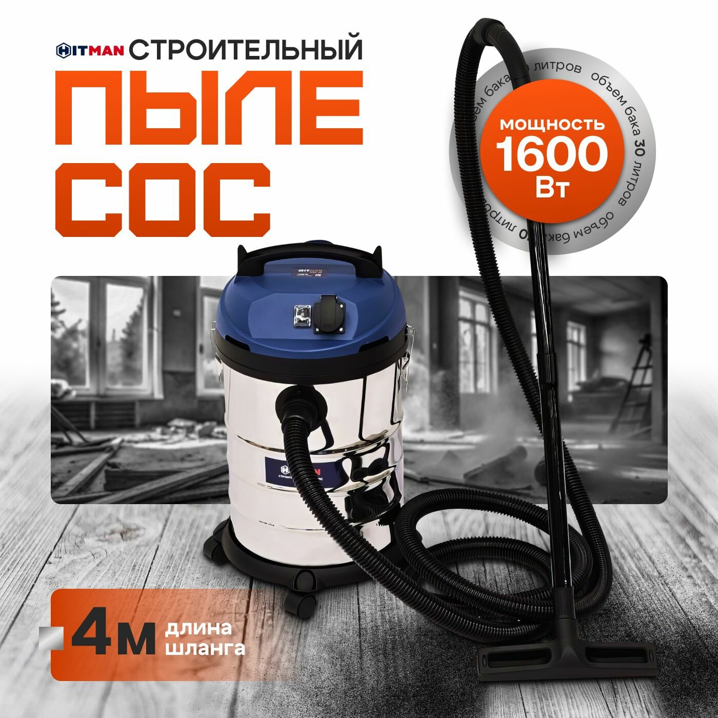 Купить Строительный пылесос, промышленный, электрический Hitman( 1600 Вт, 30 литров, сухая/влажная уборка ) с доставкой по всей России.