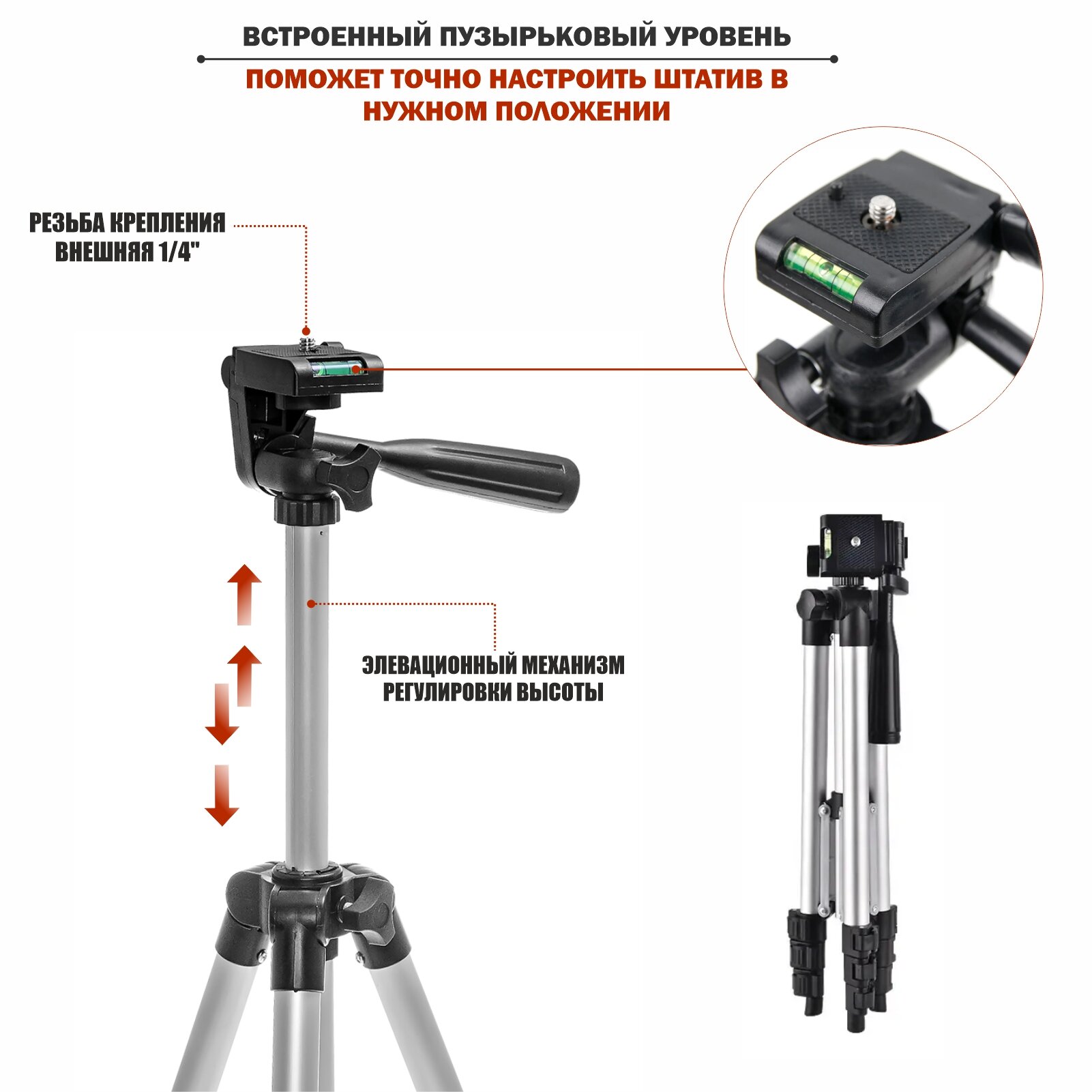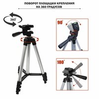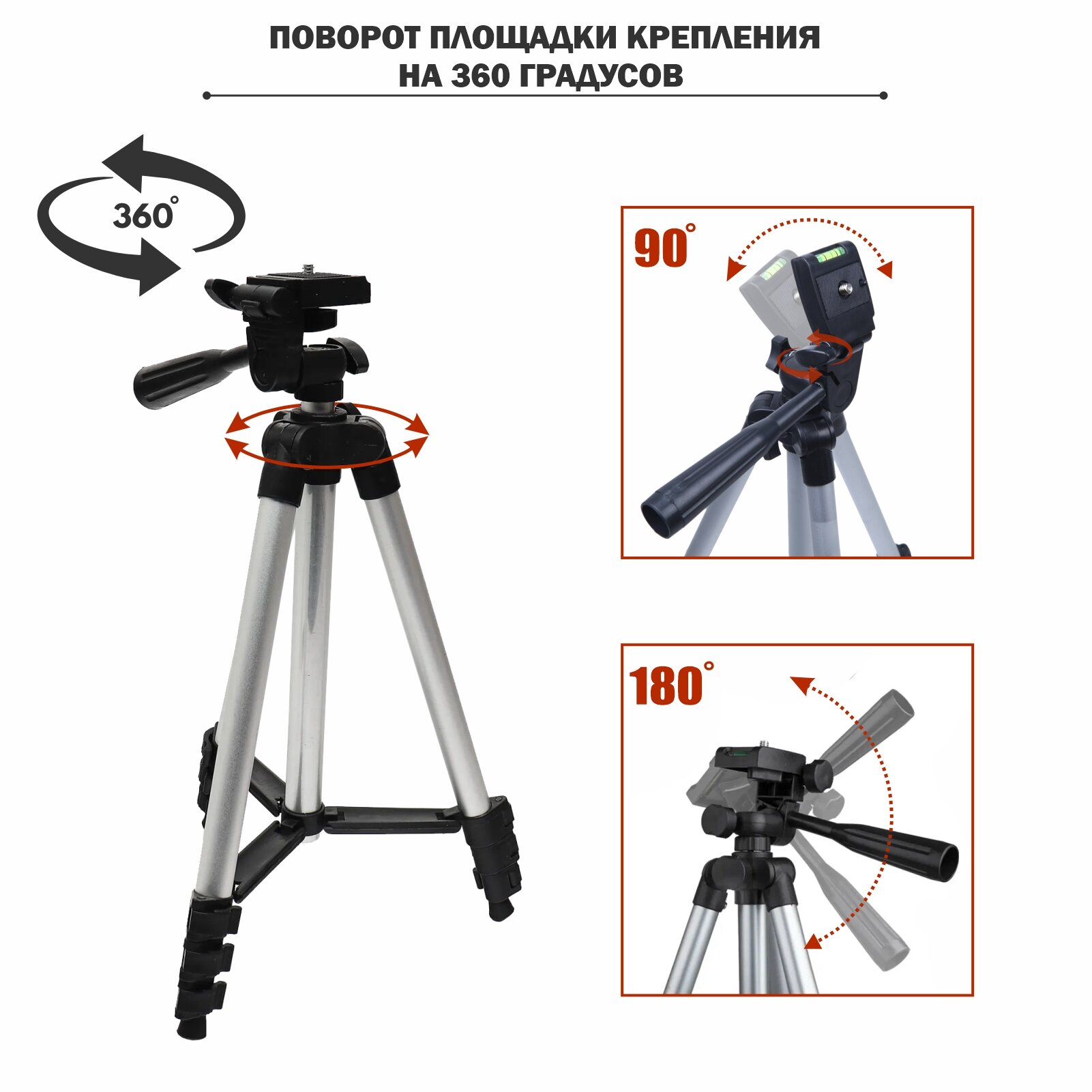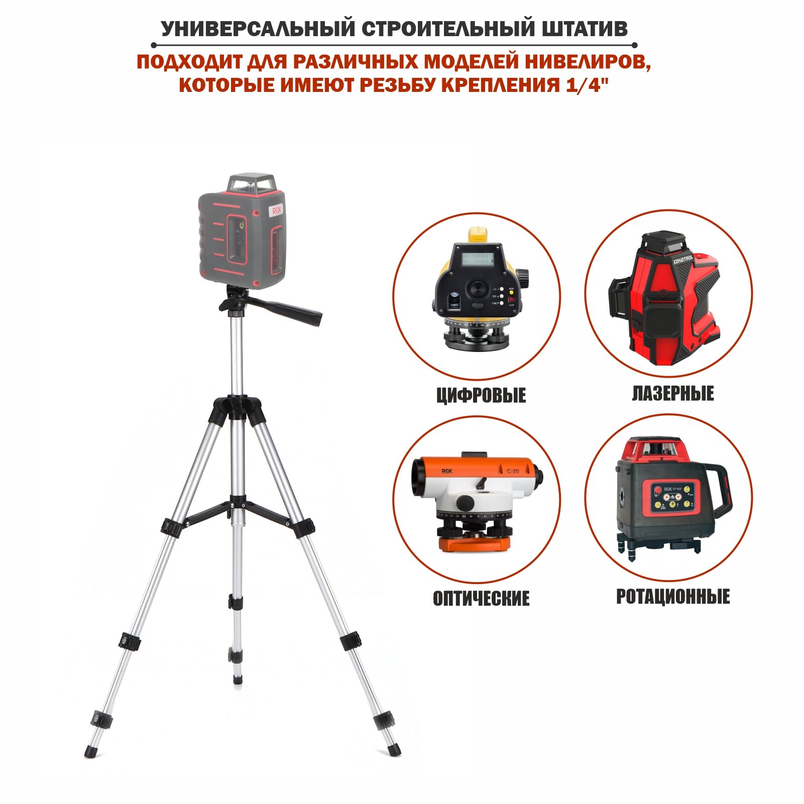 Строительный штатив регулируется по высоте, возможен поворот на 360 градусов.