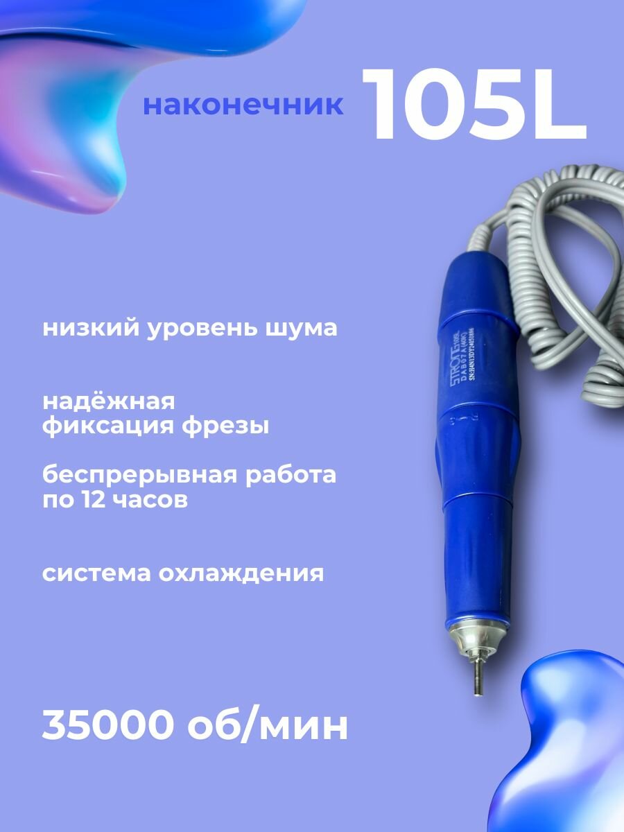 Наконечник 105L успел стать легендой у мастеров маникюра. Конструкция данной модели предусматривает самоохлаждение, что позволяет работать им до 12 часов.