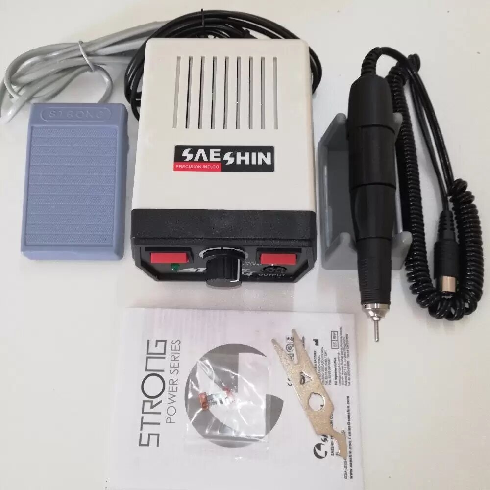 автоотключение при перегрузке, двусторонний инструмент, для левшей, дорожный, отсутствие вибрации, педаль, пенал для фрез, плавная регулировка, подставка для наконечника, цанговый зажим фрезы