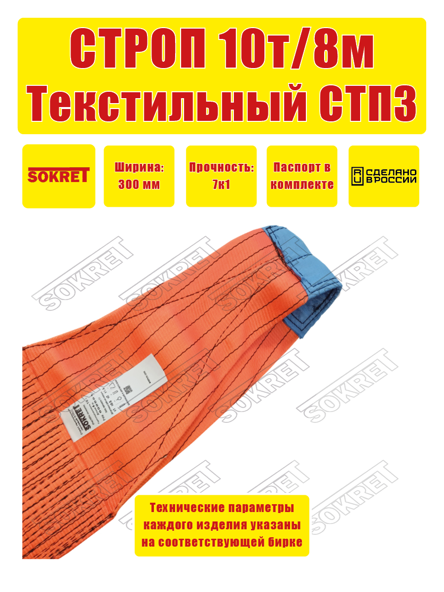 Строп текстильный петлевой SOKRET СТП — 10 т 8 м: сравнение цен, характеристики, фото, актуальное наличие и цены.