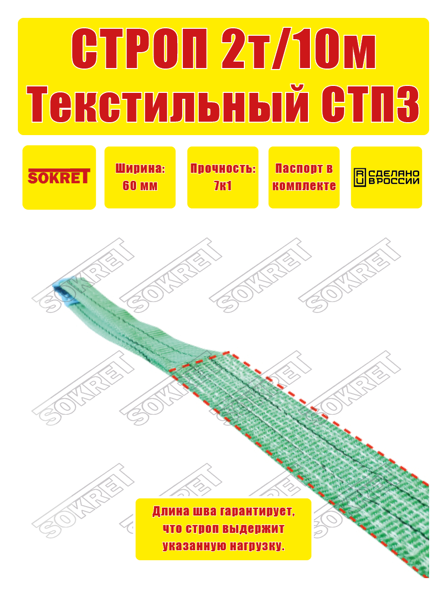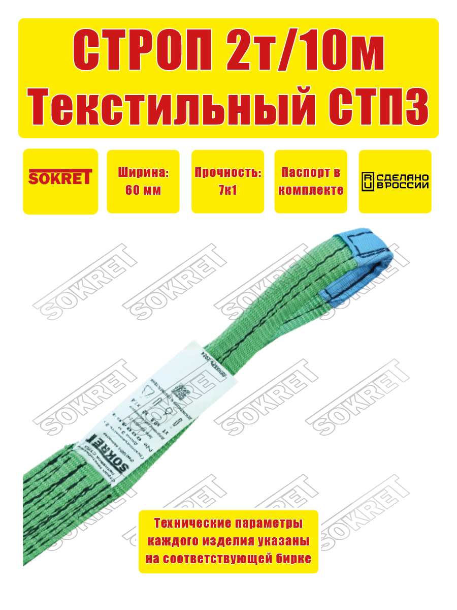 Строп текстильный петлевой SOKRET СТП — 2 т 10 м: сравнение цен, характеристики, фото, актуальное наличие и цены.