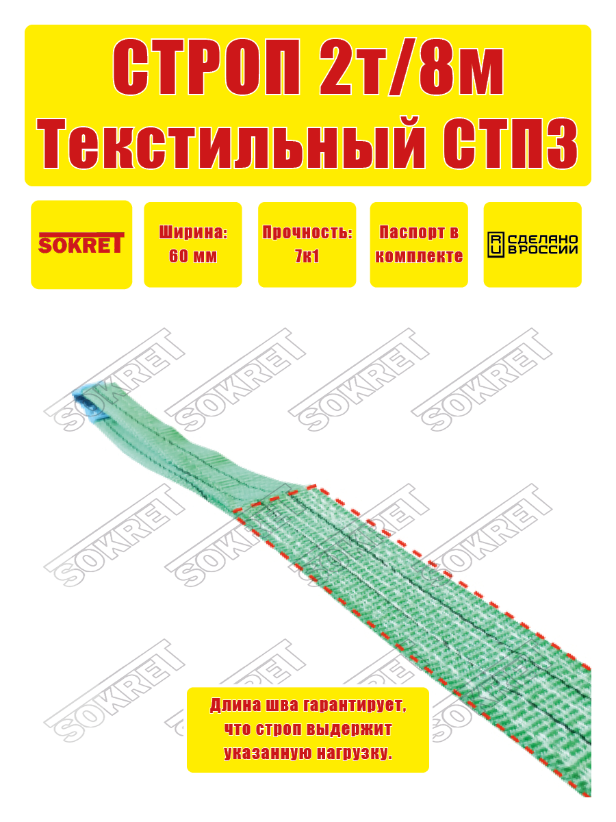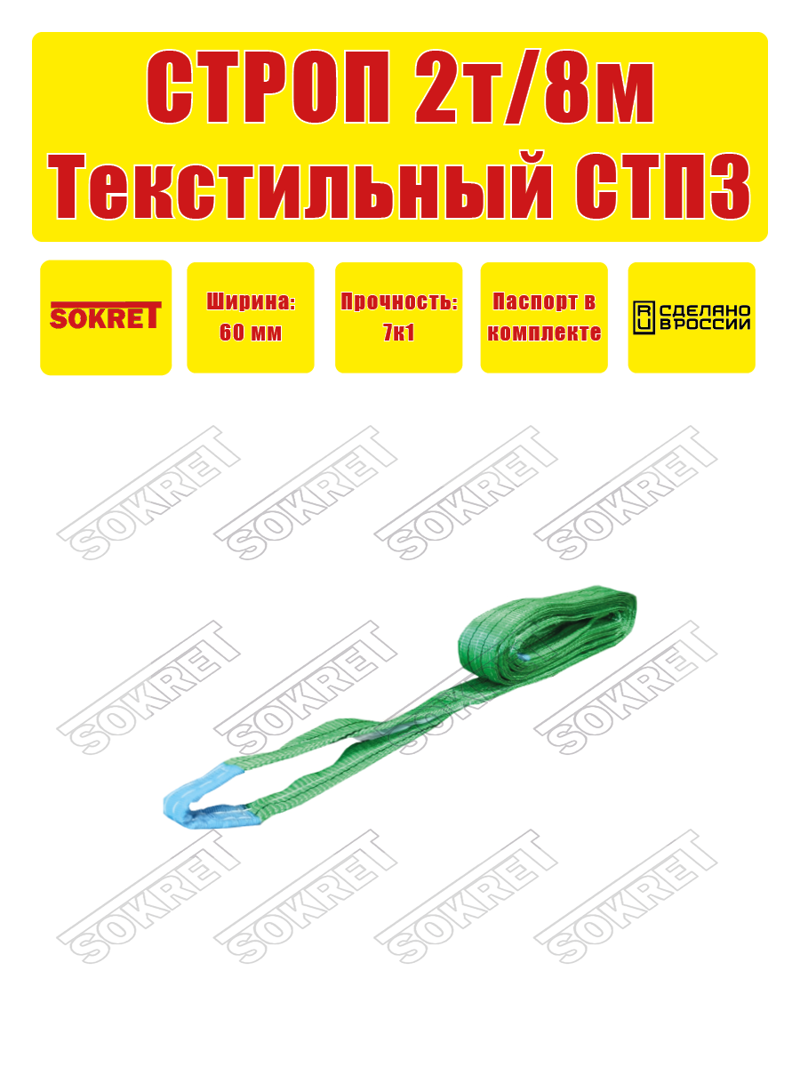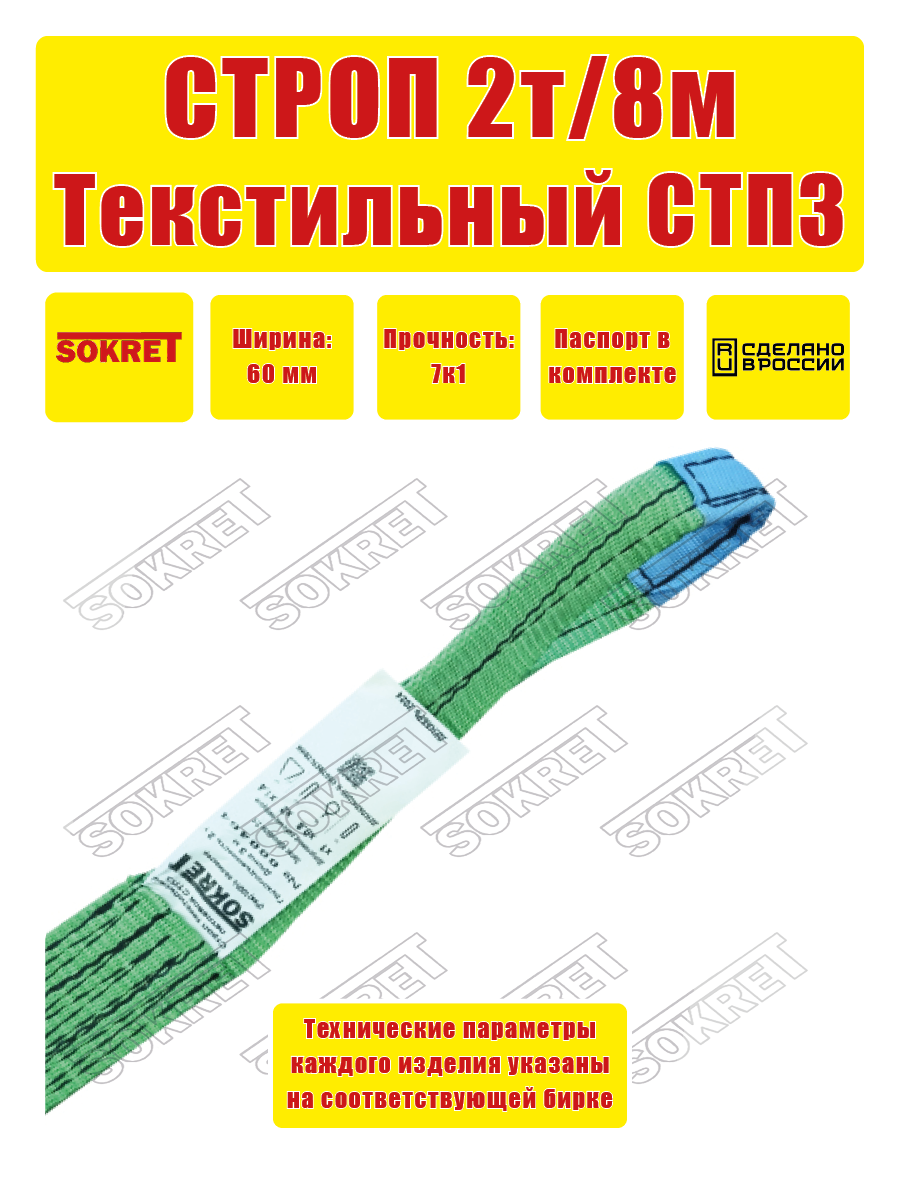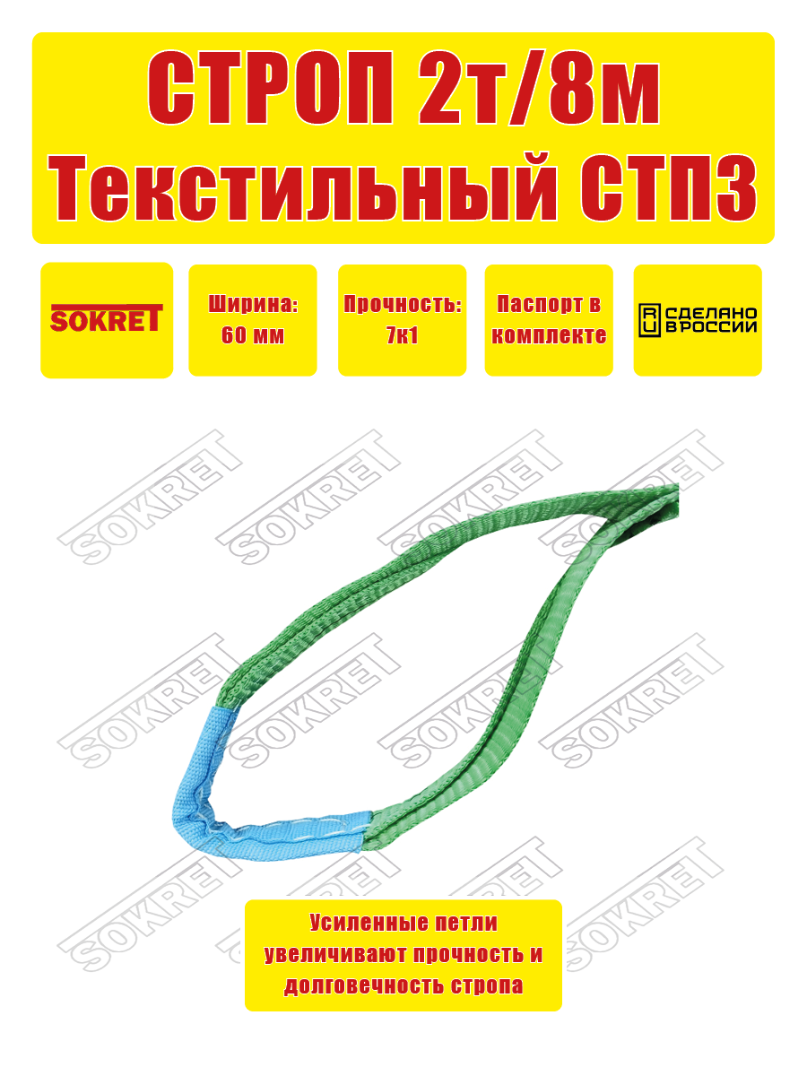 Строп текстильный петлевой SOKRET СТП — 2 т 8 м: сравнение цен, характеристики, фото, актуальное наличие и цены.