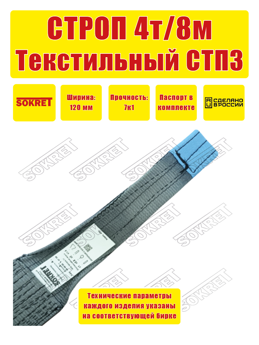 Строп текстильный петлевой SOKRET СТП — 4 т 4 м: сравнение цен, характеристики, фото, актуальное наличие и цены.