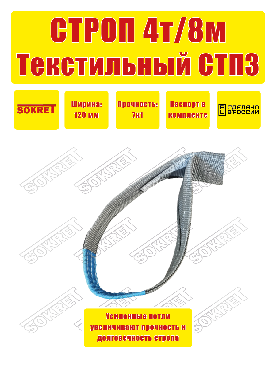 Купить Строп текстильный петлевой SOKRET СТП — 4 т 4 м с доставкой по всей России.