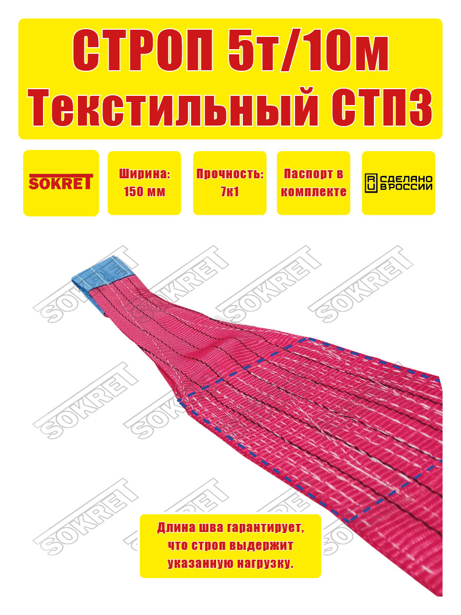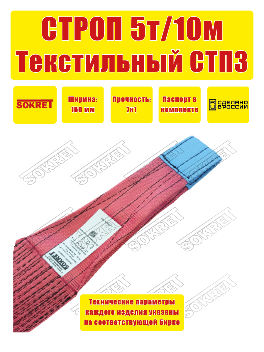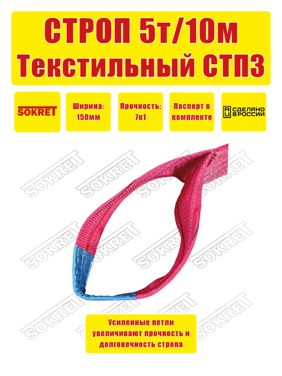 Строп текстильный петлевой SOKRET СТП — 5 т 10 м: сравнение цен, характеристики, фото, актуальное наличие и цены.
