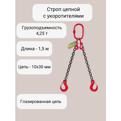 Строп цепной двухветвевой с укоротителями 4,25т 1,5м 2СЦ - это грузоподъемное оборудование, разработанное для обеспечения безопасности и эффективности при выполнении различных работ.