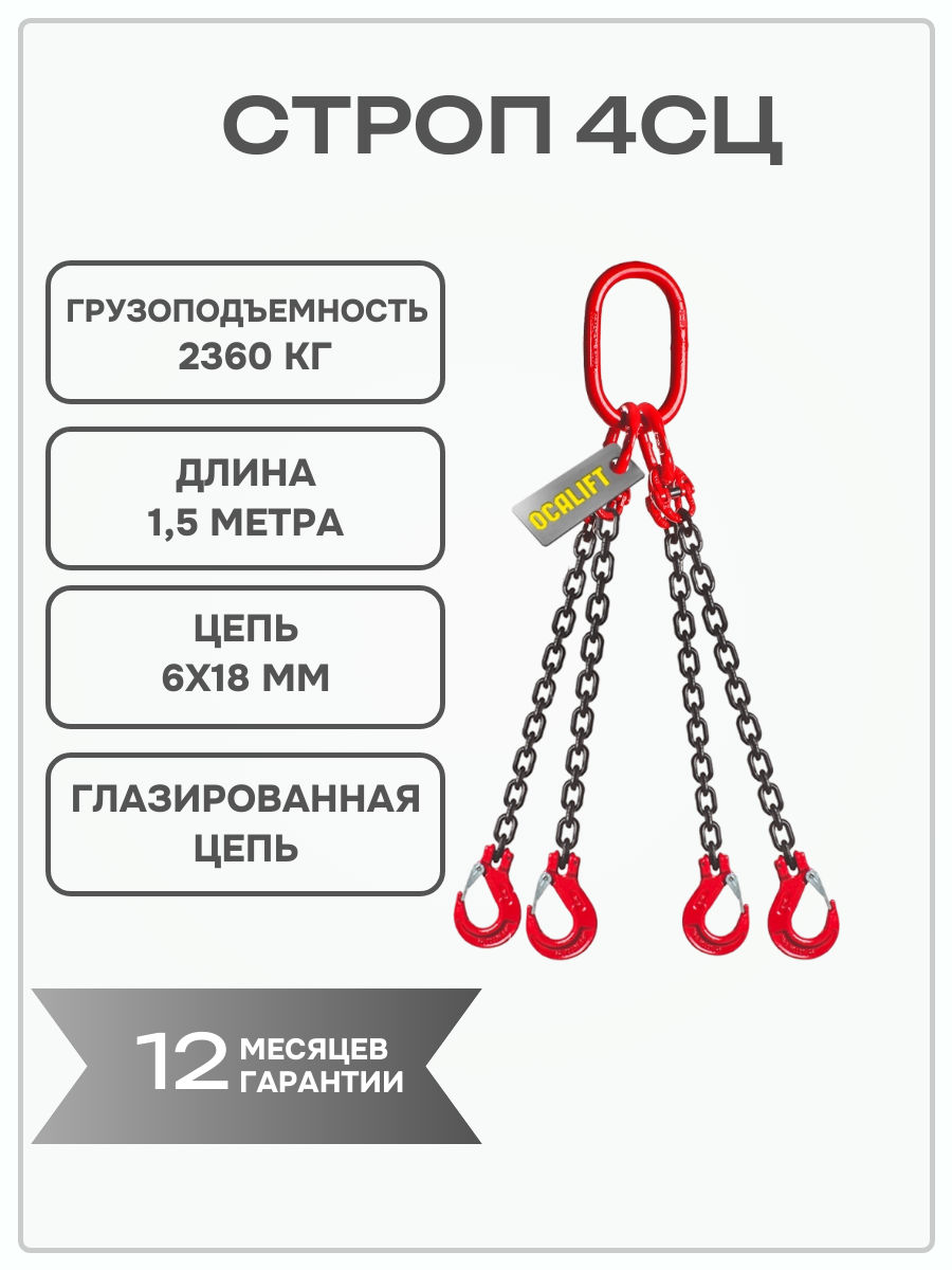 Купить Строп цепной 4СЦ 2,36 тонн 1,5 метра глазированная цепь OCALIFT с доставкой по всей России. Строп цепной 4СЦ 2,36 тонн 1,5 метра глазированная цепь OCALIFT: сравнение цен, характеристики, фото, актуальное наличие и цены.