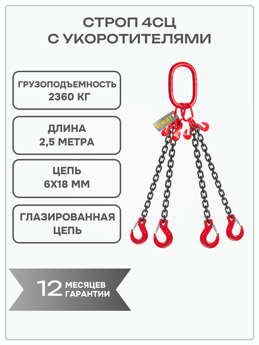 Купить Строп цепной 4СЦ 2,36т 2,5м с укоротителями OCALIFT глазированная цепь с доставкой по всей России. Строп цепной 4СЦ 2,36т 2,5м с укоротителями OCALIFT глазированная цепь: сравнение цен, характеристики, фото, актуальное наличие и цены.