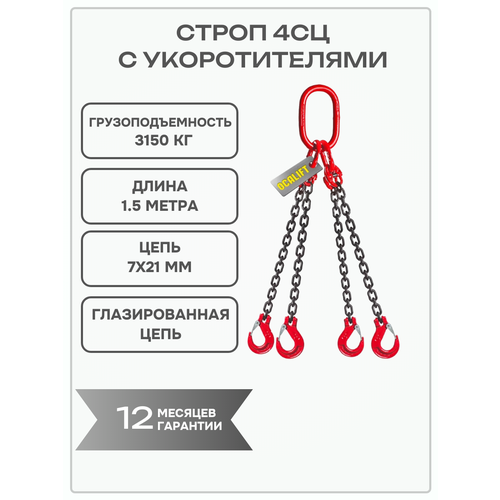 Строп цепной OCALIFT 4СЦ 3,15 тонн 1,5 метра с укоротителями цепь глазированная 8кл G80: сравнение цен, характеристики, фото, актуальное наличие и цены.