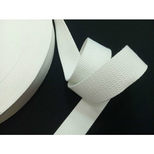 Текстильная лента (стропа) белого цвета, шириной 32 мм изготавливается из круглых, крепких синтетических нитей, которые визуально и тактильно не отличаются от хлопка, поэтому эту стропу часто называют хлопковой, а нитку называют искусственный хлопок, которая обладает свойствами: