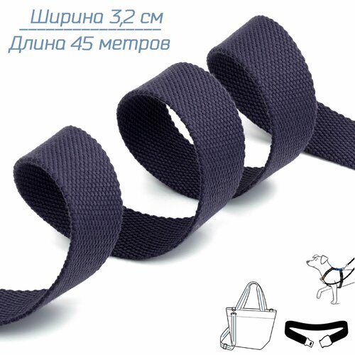 Текстильная лента ременная (стропа) чернильного цвета, шириной 32 мм изготавливается из круглых, крепких синтетических нитей, которые визуально и тактильно не отличаются от хлопка, поэтому эту стропу часто называют хлопковой, а нитку называют искусственный хлопок, которая обладает свойствами: