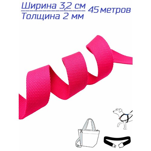 Яркая текстильная лента (стропа) розового неонового цвета, шириной 32 мм изготавливается из круглых, крепких синтетических нитей, которые визуально и тактильно не отличаются от хлопка, поэтому эту стропу часто называют хлопковой, а нитку называют искусственный хлопок, которая обладает свойствами:
