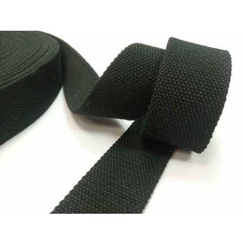 Текстильная лента (стропа) черного цвета, шириной 38 мм изготавливается из круглых, крепких синтетических нитей, которые визуально и тактильно не отличаются от хлопка, поэтому эту стропу часто называют хлопковой, а нитку называют искусственный хлопок, которая обладает свойствами:
