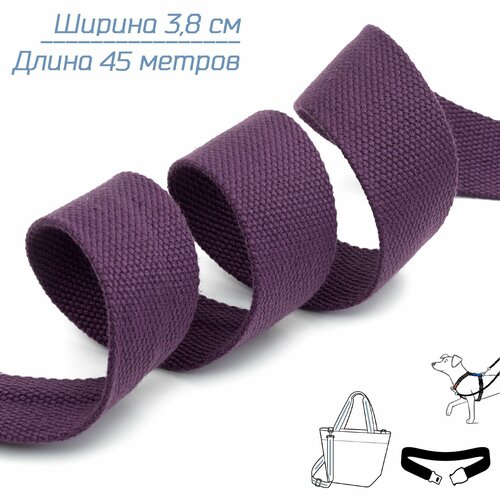Текстильная лента (стропа) пурпурного (фиолетового) цвета, шириной 38 мм изготавливается из круглых, крепких синтетических нитей, которые визуально и тактильно не отличаются от хлопка, поэтому эту стропу часто называют хлопковой, а нитку называют искусственный хлопок, которая обладает свойствами: