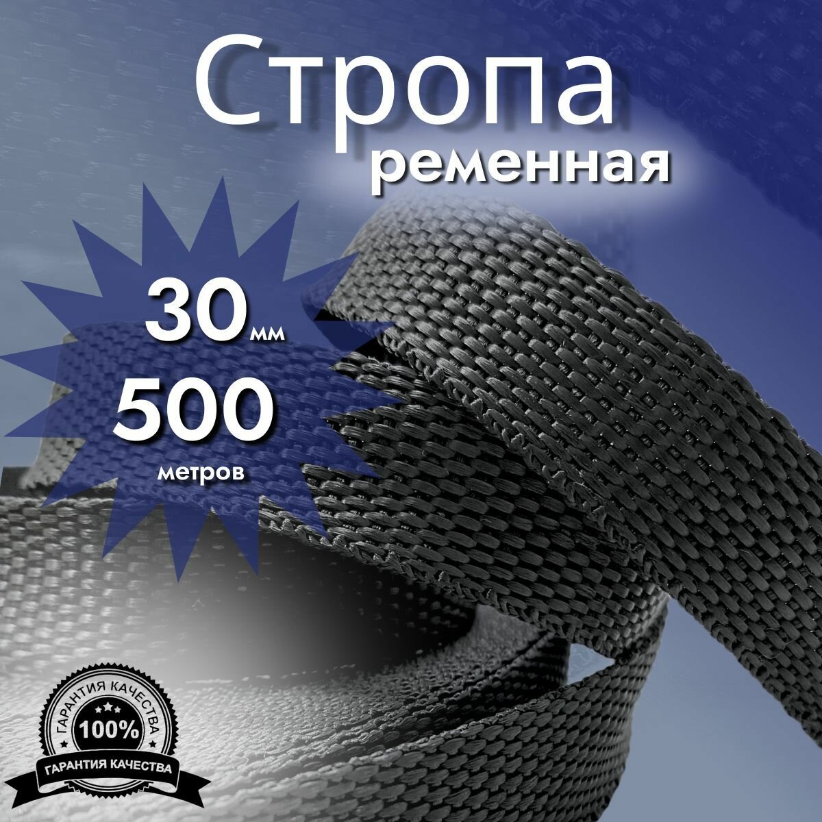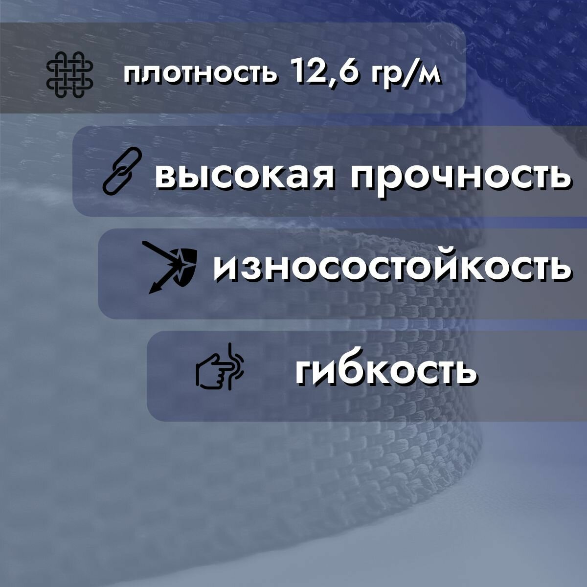 Стропа полипропиленовая, лента ременная, ранцевая, швейная, текстильная, черного цвета. Лента хорошо себя зарекомендовала в производстве рюкзаков и сумок, туристического снаряжения и тентов, рюкзаки, амуниция для животных (шлейки, поводки), ремни, ремешки, спецодежда и т. п. Ременные ленты обладают большим запасом прочности, часто используются в изделиях, которые подвергаются высоким нагрузкам. Они изготавливаются из прочного синтетического материала и имеют особое плетение нитей, поэтому устойчивы к износу, истиранию и сложным условиям эксплуатации.
