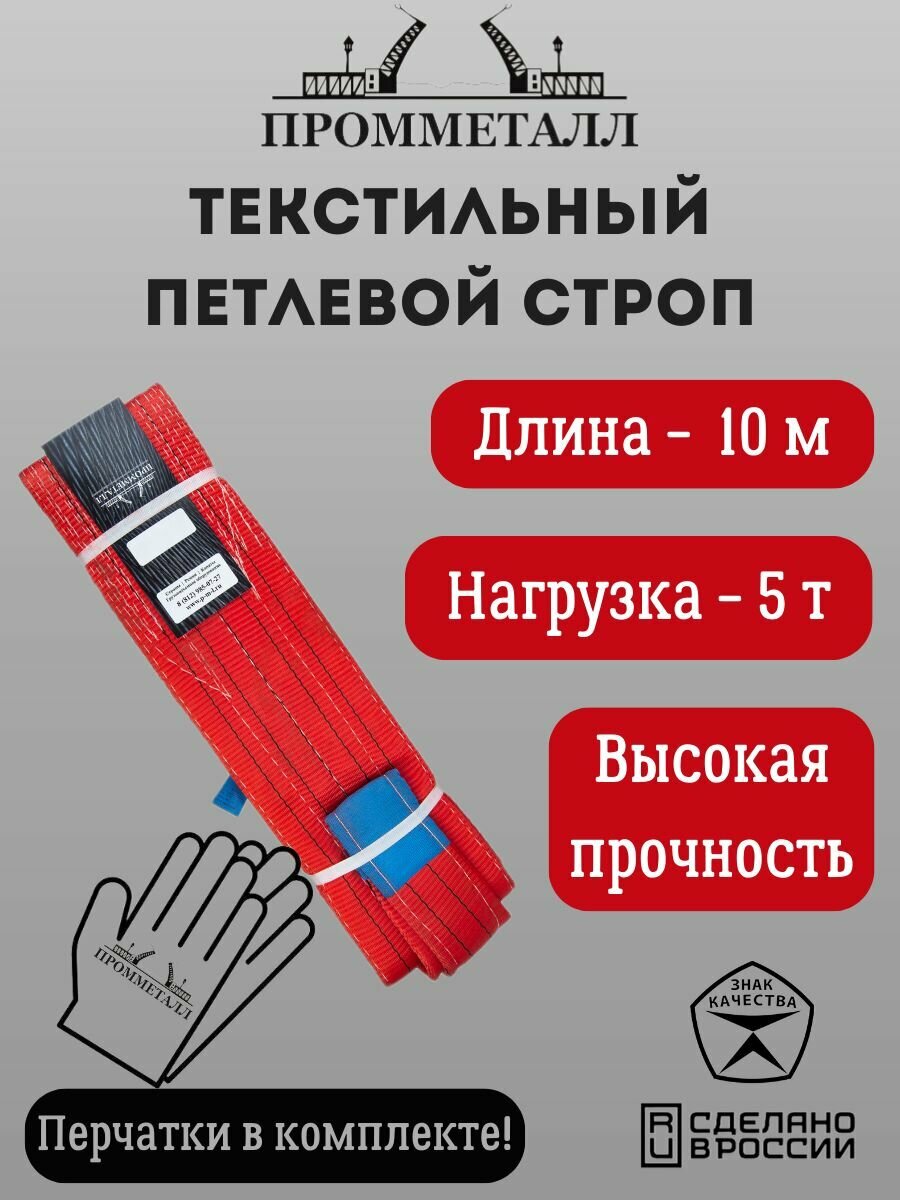 Стропа СТП усиленная - 5тн /10000 от бренда промметалл - это надежный инструмент для подъема и транспортировки различных грузов. Она имеет грузоподъемность до 5 тонн и длину 10000 мм. Данная стропа изготовлена из высококачественного текстиля, что обеспечивает ее долговечность.