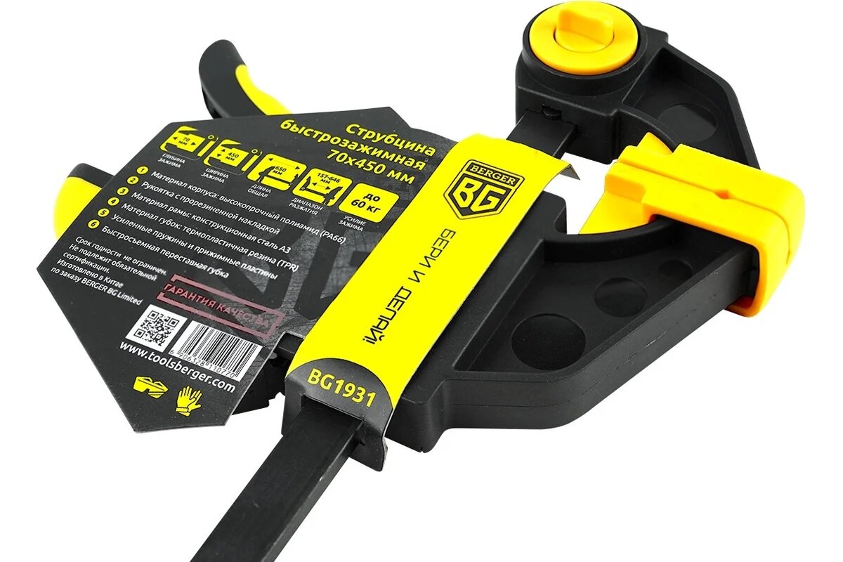 Струбцина Berger Быстрозажимная 70×450мм, зажим до 60кг BG1931: сравнение цен, характеристики, фото, актуальное наличие и цены.