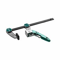 быстрозажимная, цельнокованная направляющая, храповый механизм, эксцентриковый зажим, работа одной рукой, кнопка быстрого сброса, плавающая полированная губка, устойчивость к вибрациям, профессиональное использование, для столярных и слесарных работ