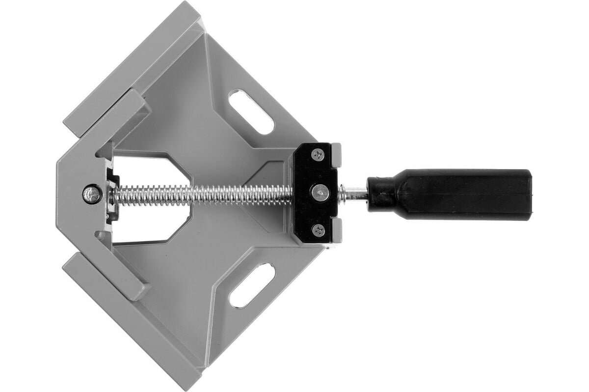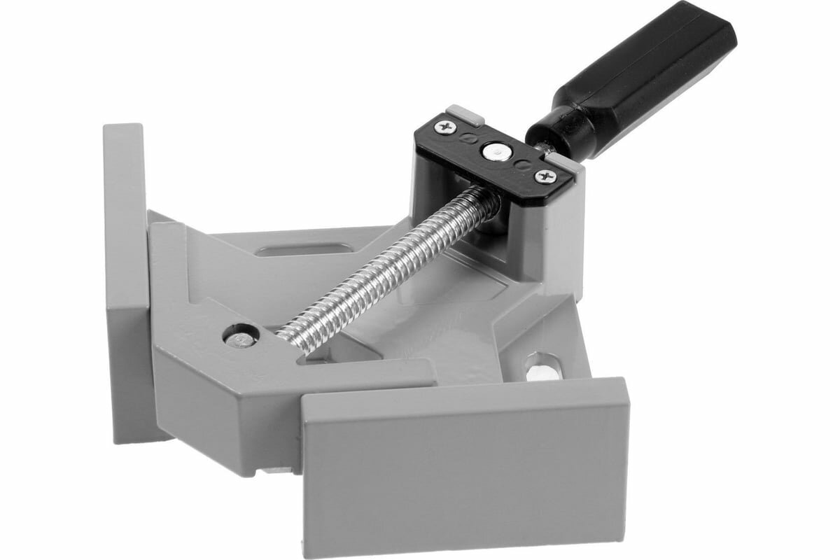 Угловая струбцина - тиски из алюминиевого сплава, с двумя винтовыми зажимами с шириной зажима до 68 мм. Оснащена поворотными шарнирами винтового механизма, что позволяет зажимать детали разной толщины. Незаменимый инструмент для сборки мебели, декоративных или простых деревянных, металлических и пластиковых конструкций. Также может использоваться при работе с другими материалами.