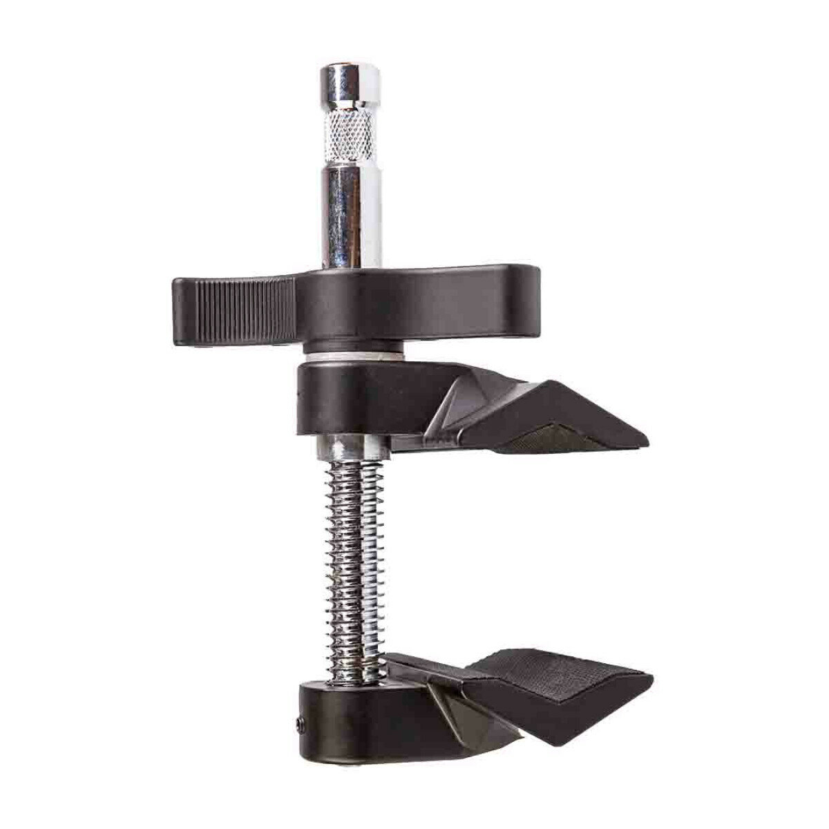 Металлическая струбцина со стандартным пальцем для установки оборудования, имеющего подходящее посадочное гнездо. Может закрепляться как на плоской поверхности (край стола), так и на всевозможных стойках и перекладинах. Внутренняя поверхность зажимных губок имеет уплотняющее покрытие, обеспечивающее надежную фиксацию и препятствующее повреждению поверхности на которую устанавливается струбцина. Труба - 70 мм, максимальная ровная поверхность - 60 см, минимальная - 10 мм.
