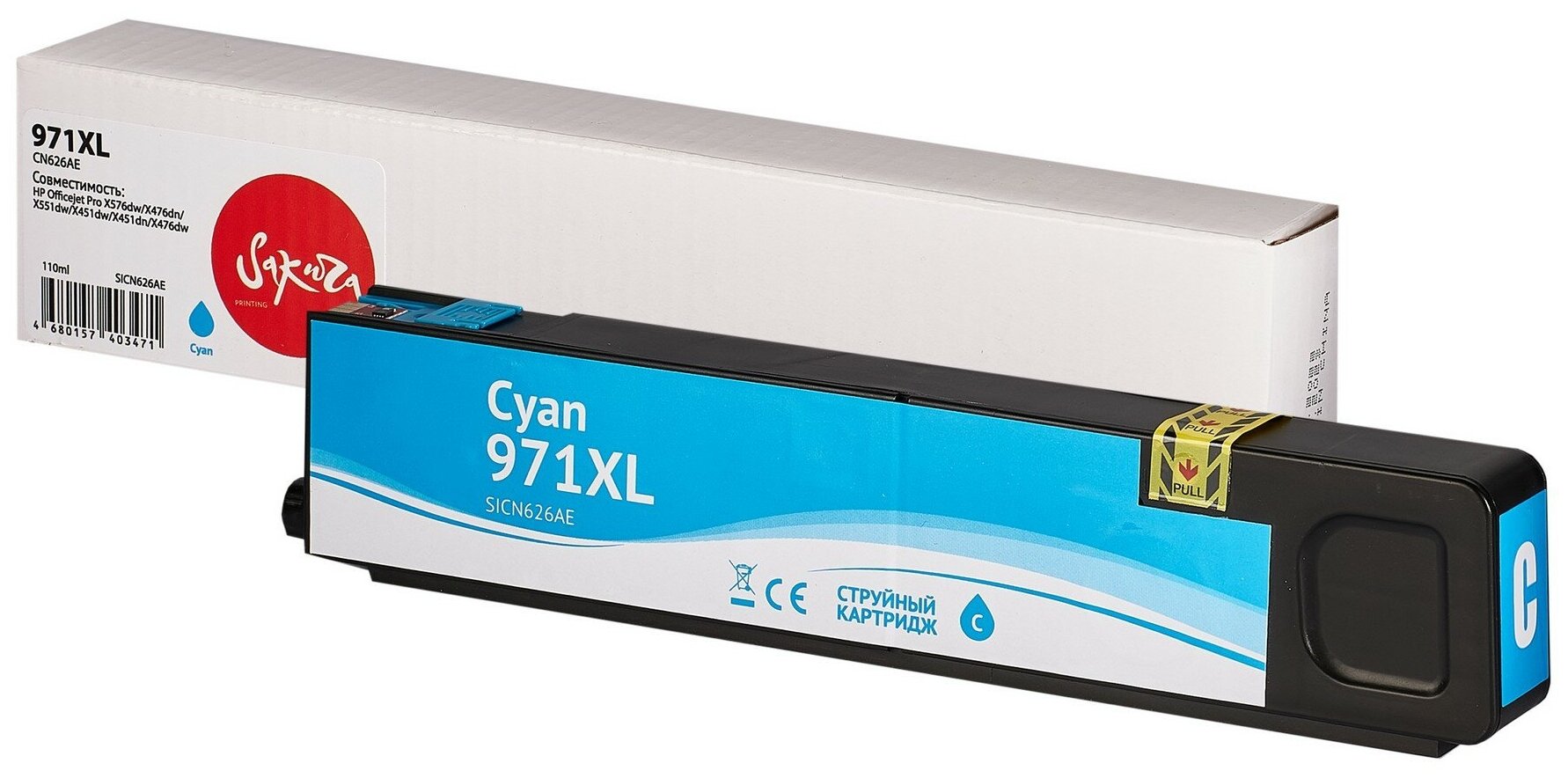 Купить Картридж CN626AE (№971XL Cyan) для принтера и МФУ HP, струйный, голубой, 110 мл, 7000 страниц, Sakura с доставкой по всей России.