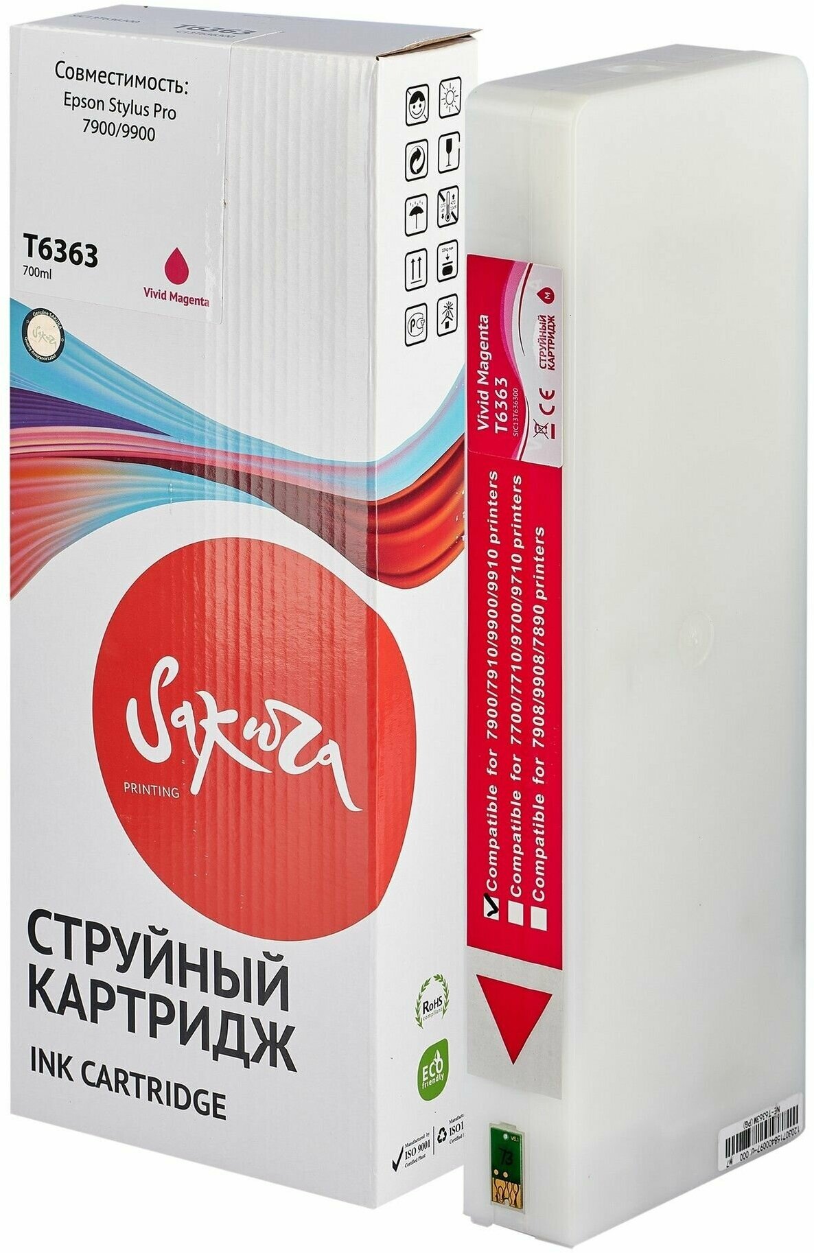 Струйный картридж Sakura Printing Sakura C13T636300 (T6363 Vivid Magenta) для Epson, пурпурный, 700 мл.